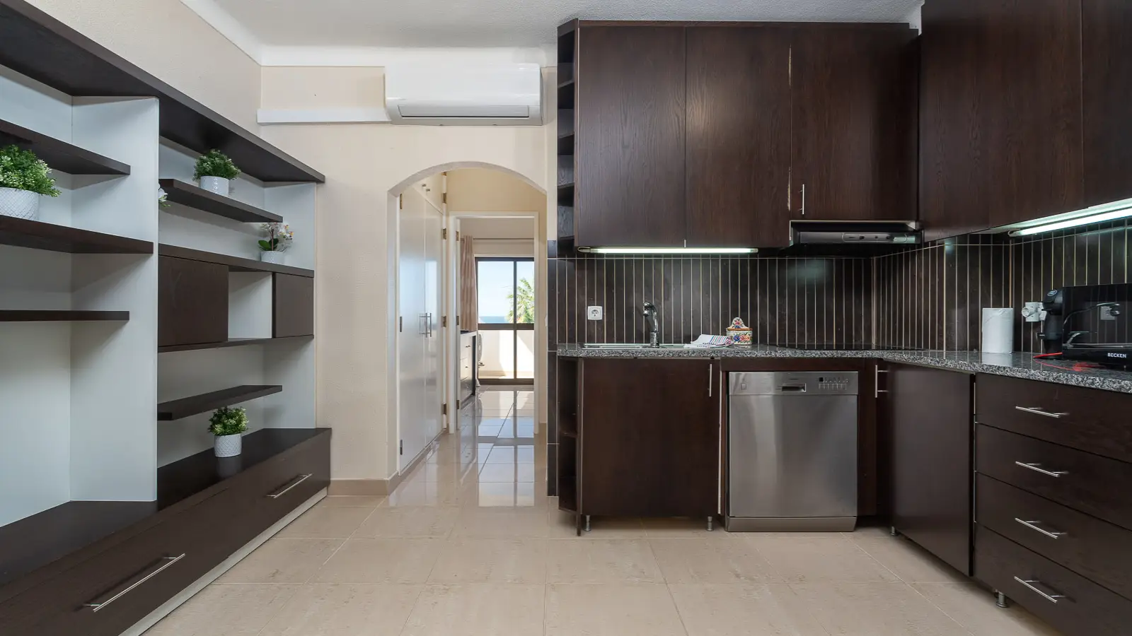 Erleben Sie komfortables Wohnen in dieser möblierten 2-Zimmer-Wohnung in Albufeira. Die Wohnung verfügt über eine voll ausgestattete Küche mit modernen Annehmlichkeiten wie Geschirrspüler und Backofen. Sie bietet einen Balkon, Klimaanlage zum Kühlen und Heizen sowie einen elektrischen Warmwasserbereiter. Haustiere und Rauchen sind in dieser Unterkunft nicht gestattet. WLAN ist verfügbar, wird aber separat bezahlt.