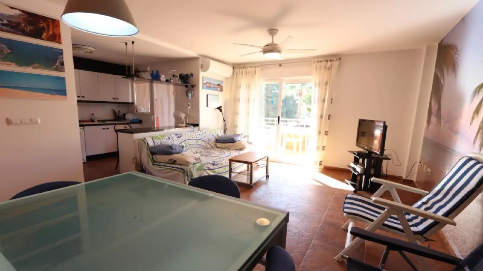 Diese komplett möblierte 2-Zimmer-Wohnung in Dénia steht zur Miete. Sie bietet moderne Annehmlichkeiten wie eine funktionale Küche mit Backofen und einen Balkon. Parkplätze sind vorhanden, und die Mieter können den Pool nutzen. Bitte beachten Sie jedoch, dass in der Wohnung kein Internetanschluss verfügbar ist.