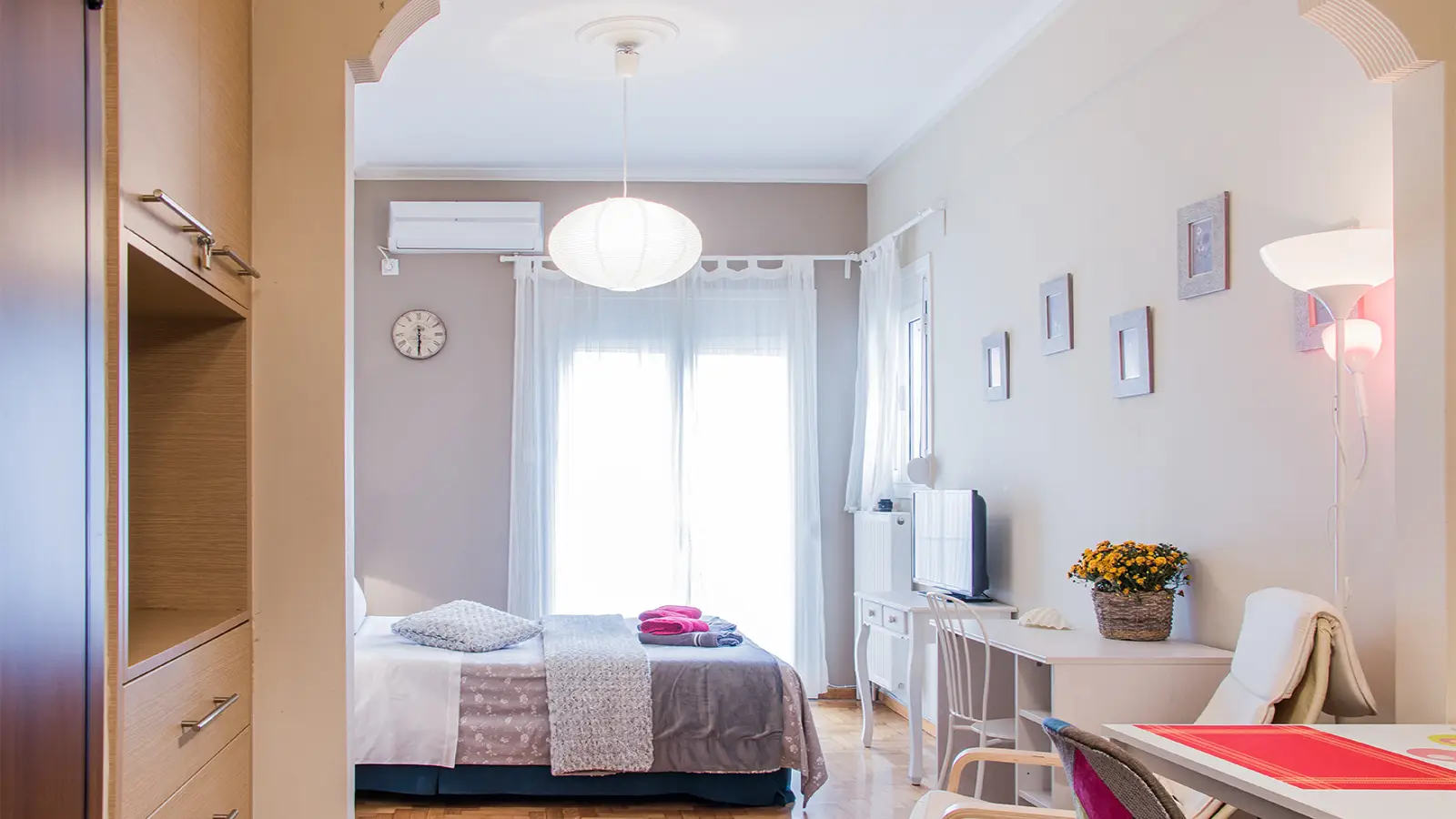 Dieses möblierte Studio in Athen verfügt über eine individuell regulierbare Klimaanlage und Zentralheizung und sorgt so das ganze Jahr über für ein angenehmes Wohnklima. Die Wohnung verfügt über eine ausgestattete Küche mit Backofen und eine gemeinschaftlich genutzte Waschmaschine. Rauchen ist gestattet, Haustiere sind jedoch nicht erlaubt. Ein Balkon bietet einen angenehmen Außenbereich. WLAN ist gegen eine zusätzliche Gebühr verfügbar.