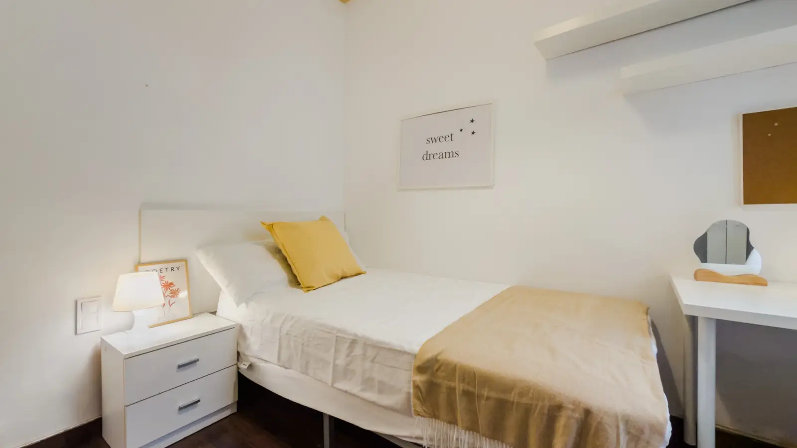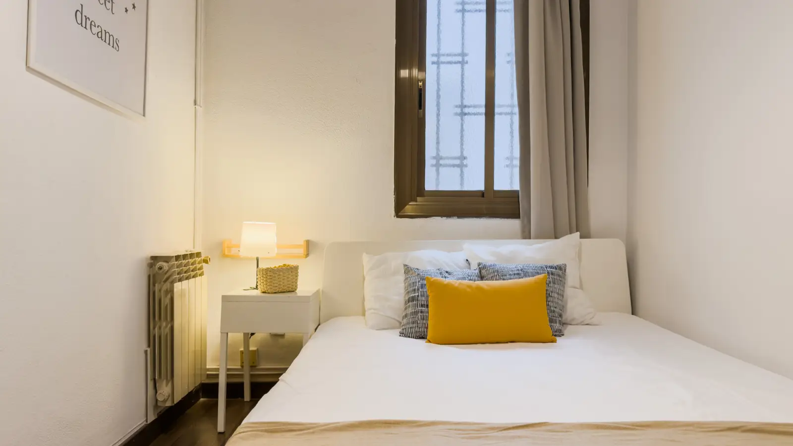 Dieses geräumige Zimmer in einer 6-Zimmer-WG im lebhaften Viertel La Dreta de l'Eixample in Barcelona steht zur Miete. Das Zimmer ist nach außen gerichtet und komplett möbliert. Zur Ausstattung gehören Zentralheizung, eine eigene Waschmaschine sowie Annehmlichkeiten wie Geschirrspüler, Fernseher und eine voll ausgestattete Küche. Bitte beachten Sie, dass Paare nicht erwünscht sind, Berufstätige und Studierende jedoch herzlich willkommen sind. Die Unterkunft wurde von Spotahome persönlich geprüft und verifiziert, um Ihnen ein sicheres Mieterlebnis zu gewährleisten.