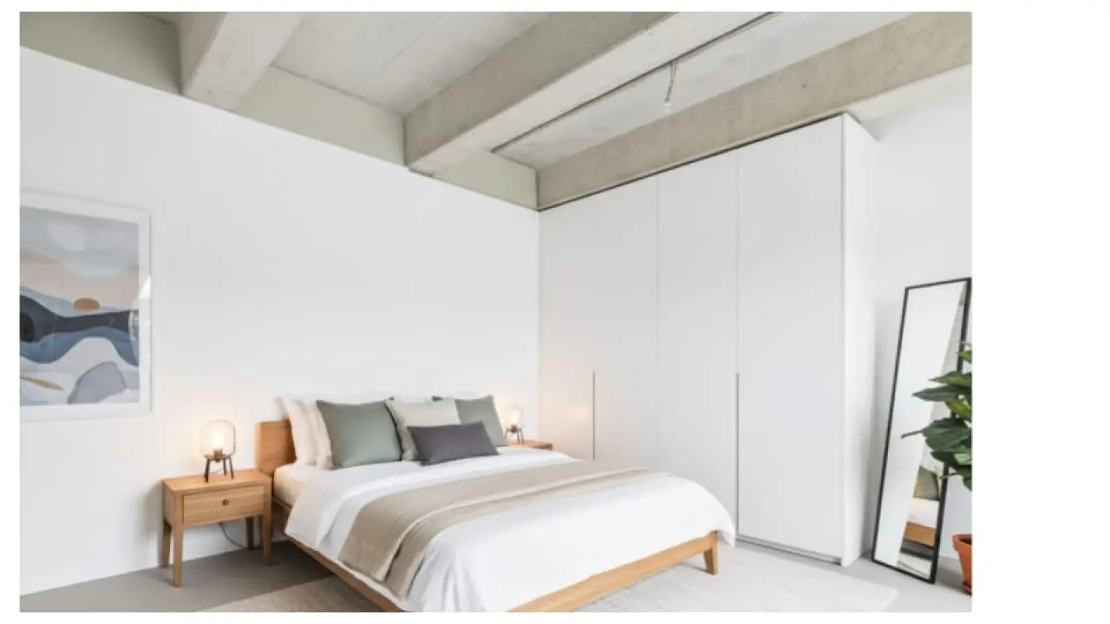Die abgebildeten Möbel dienen nur der Veranschaulichung. Das Bild wurde mithilfe von KI generiert. Die Wohnung wird komplett möbliert vermietet.