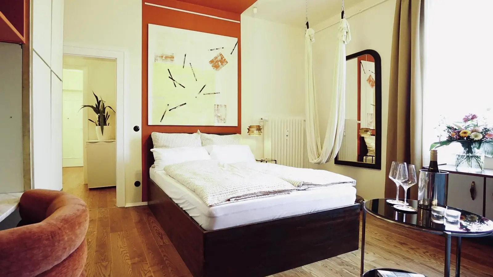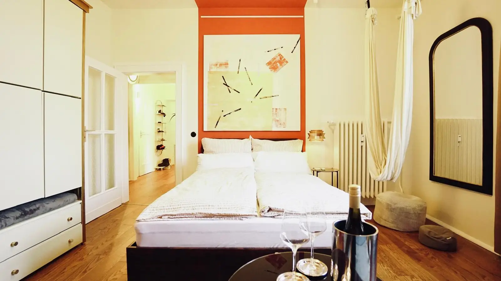 Die Wohnung liegt in Berlin und bietet eine hervorragende Anbindung an zahlreiche Sehenswürdigkeiten. In fußläufiger Entfernung finden Sie verschiedene Restaurants wie Spätzlemacher Berlin, Green Garden und Glühwald. Auch bekannte Attraktionen wie Junge Mit Ente und Mittelpunkt von Friedrichshain befinden sich in der Nähe, sodass Sie in dieser pulsierenden Stadt viel entdecken können.