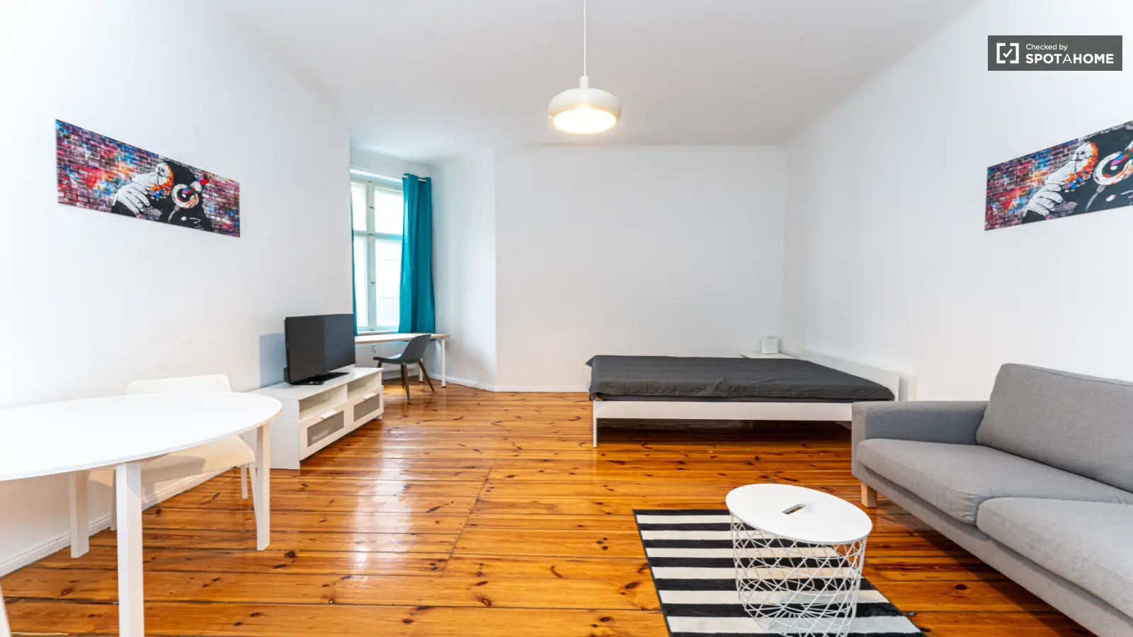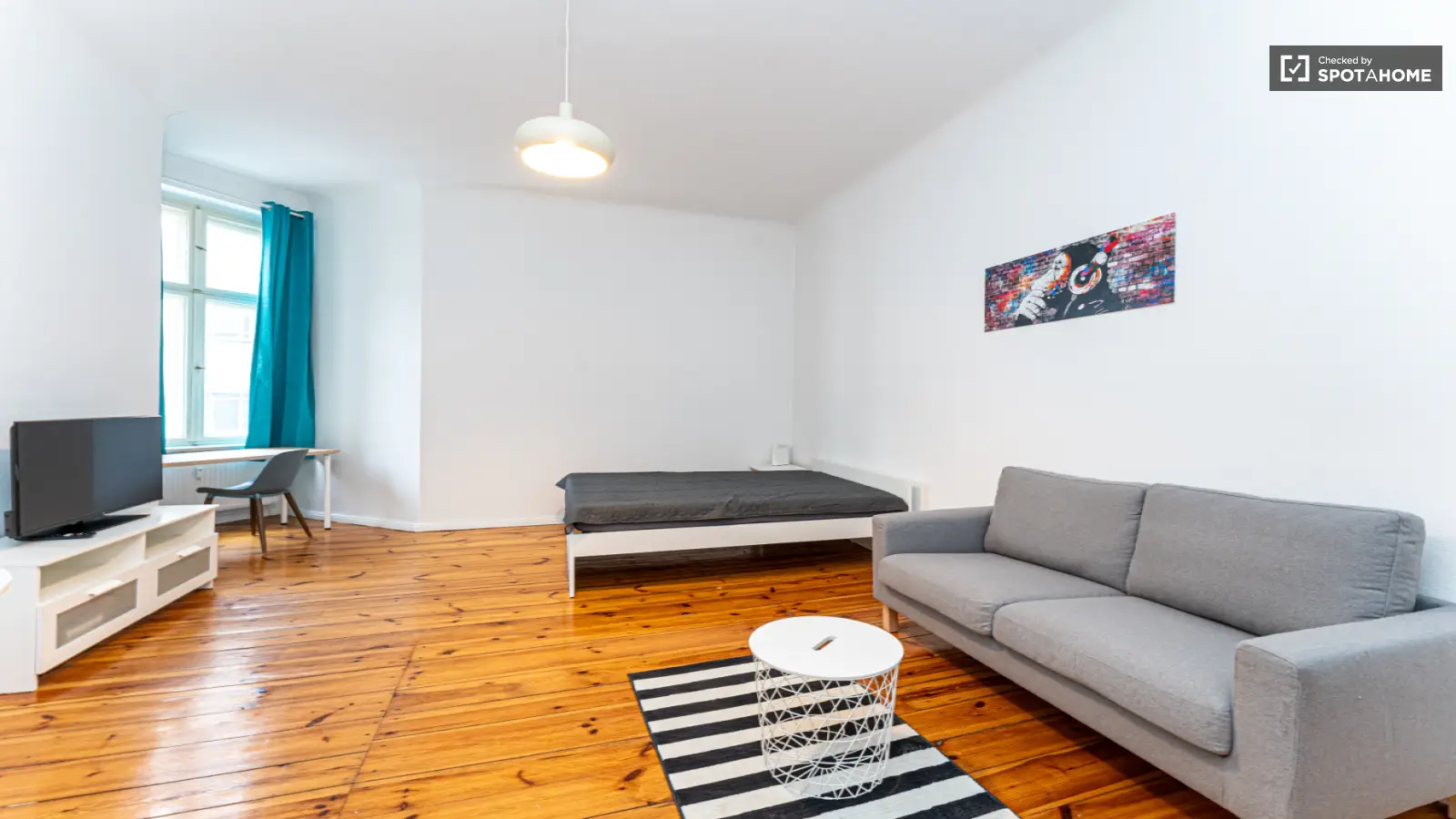 Das Apartment liegt in einem lebendigen Viertel Berlins, umgeben von wichtigen Sehenswürdigkeiten. In unmittelbarer Nähe befinden sich die Bösebrücke und die Berliner Mauer, beides Orte von historischer und kultureller Bedeutung. Auch diverse Restaurants wie das Café Bakery Zimtmühle und das Nabio sind bequem zu Fuß erreichbar. Tauchen Sie ein in den dynamischen Lifestyle dieser Top-Lage. Buchen Sie noch heute bei Spotahome und sichern Sie sich diese attraktive Wohnung!