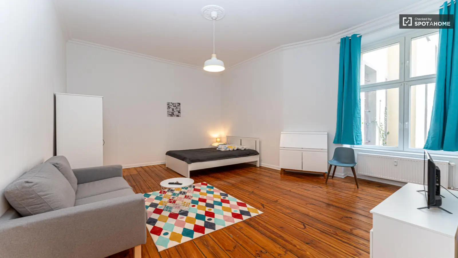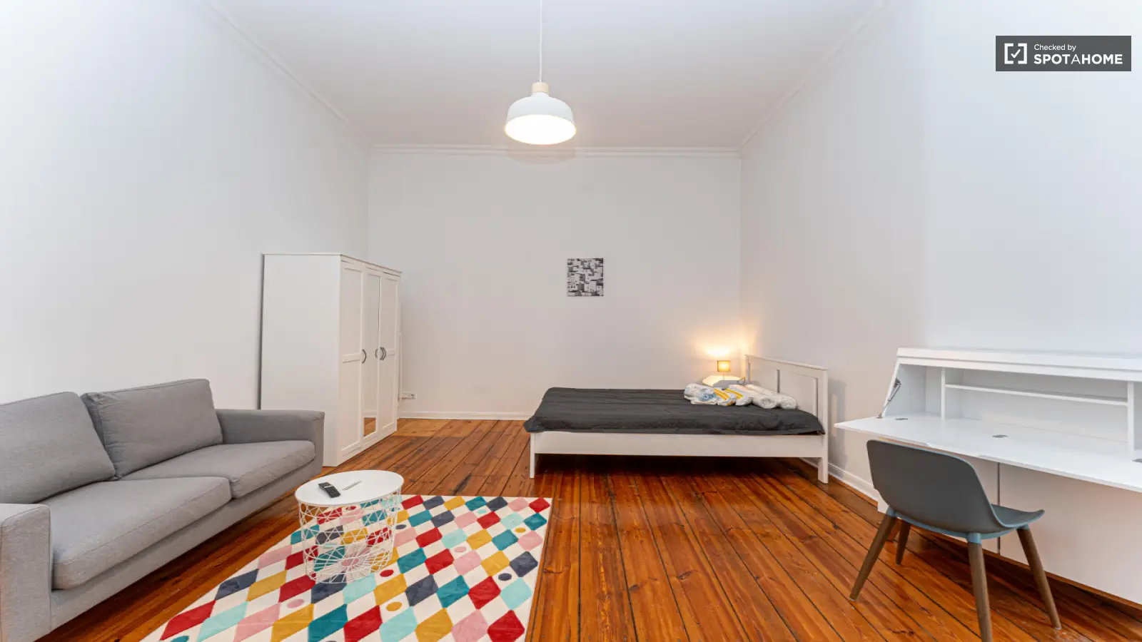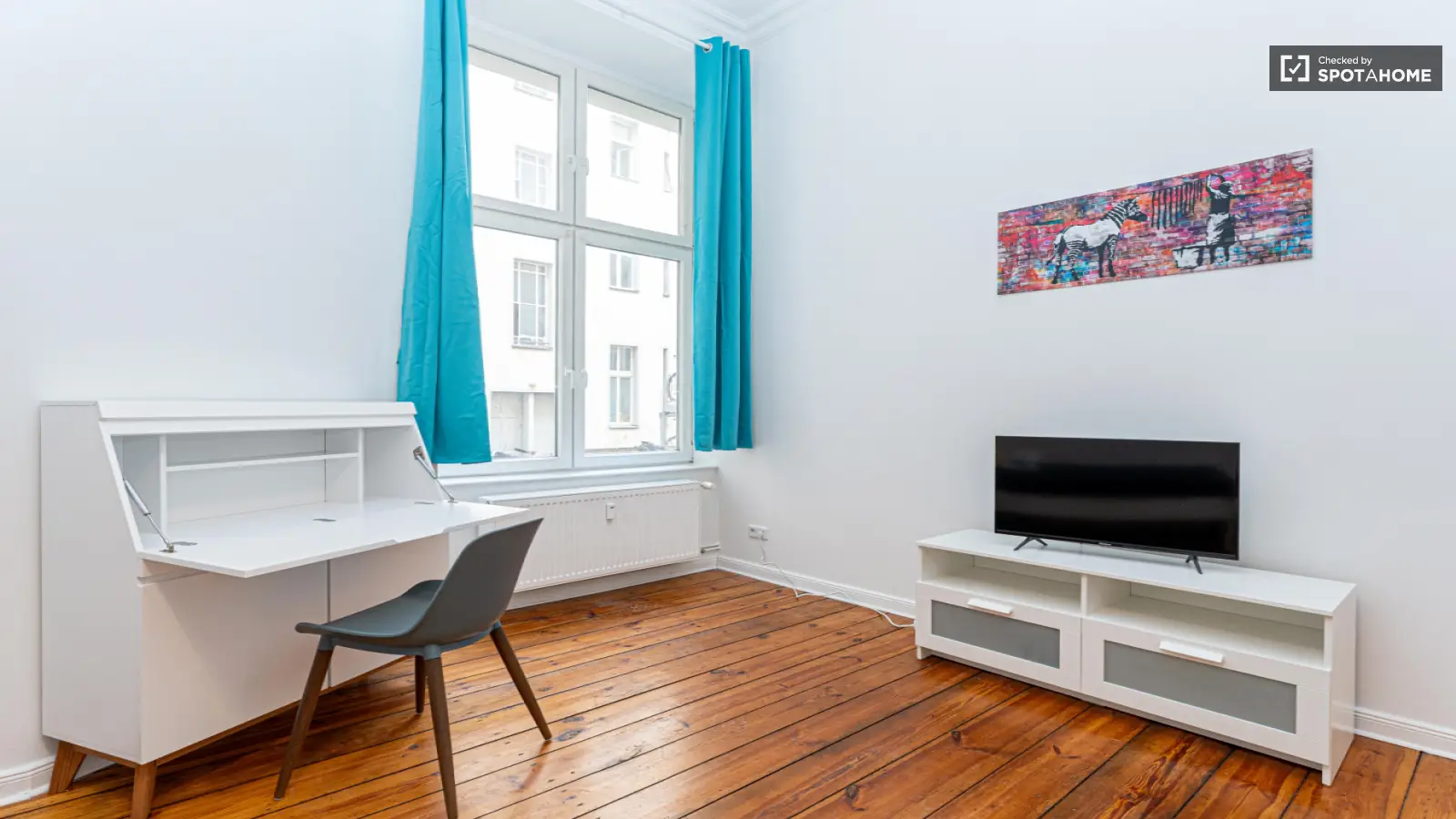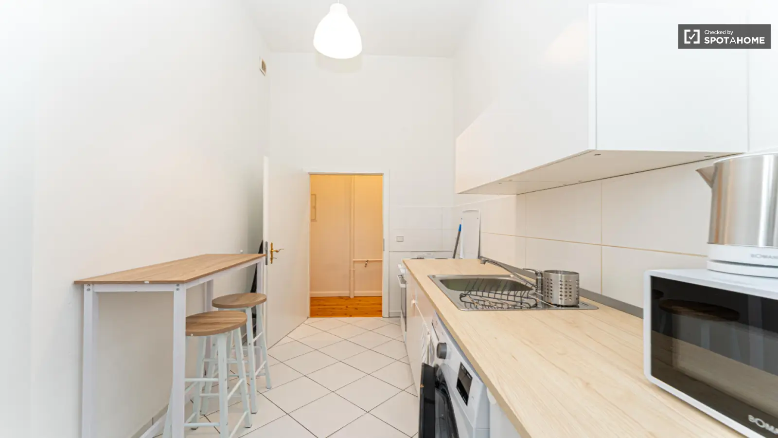 Dies ist eine wunderschön möblierte 1-Zimmer-Wohnung in Berlin. Die Wohnung bietet moderne Annehmlichkeiten wie einen Fernseher und eine eigene Waschmaschine und ist somit sowohl komfortabel als auch gemütlich. Mieter profitieren außerdem von einer voll ausgestatteten Küche. Alle Nebenkosten (Strom, Heizung, Wasser, Gas und WLAN) sind in der Miete enthalten. Die Immobilie wurde von Spotahome geprüft und erfüllt somit die Qualitätsstandards.