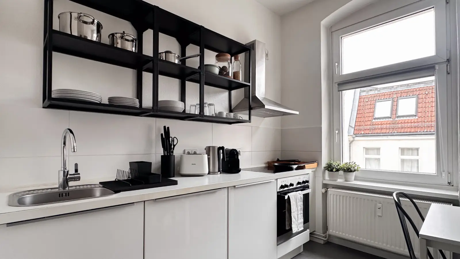 Dieses 1-Zimmer-Apartment in Berlin ist komplett möbliert. Die Küche ist mit allen wichtigen Geräten, inklusive Backofen, ausgestattet. Zur weiteren Ausstattung gehören eine Waschmaschine und ein Fernseher. Alle Nebenkosten wie Strom, Wasser, Gas und WLAN sind in der Miete enthalten. Bitte beachten Sie, dass Haustiere und Rauchen in der Wohnung nicht gestattet sind. Der Vermieter wohnt nicht in der Wohnung. Eine Meldepflicht besteht für Berufstätige, Studierende und Paare.