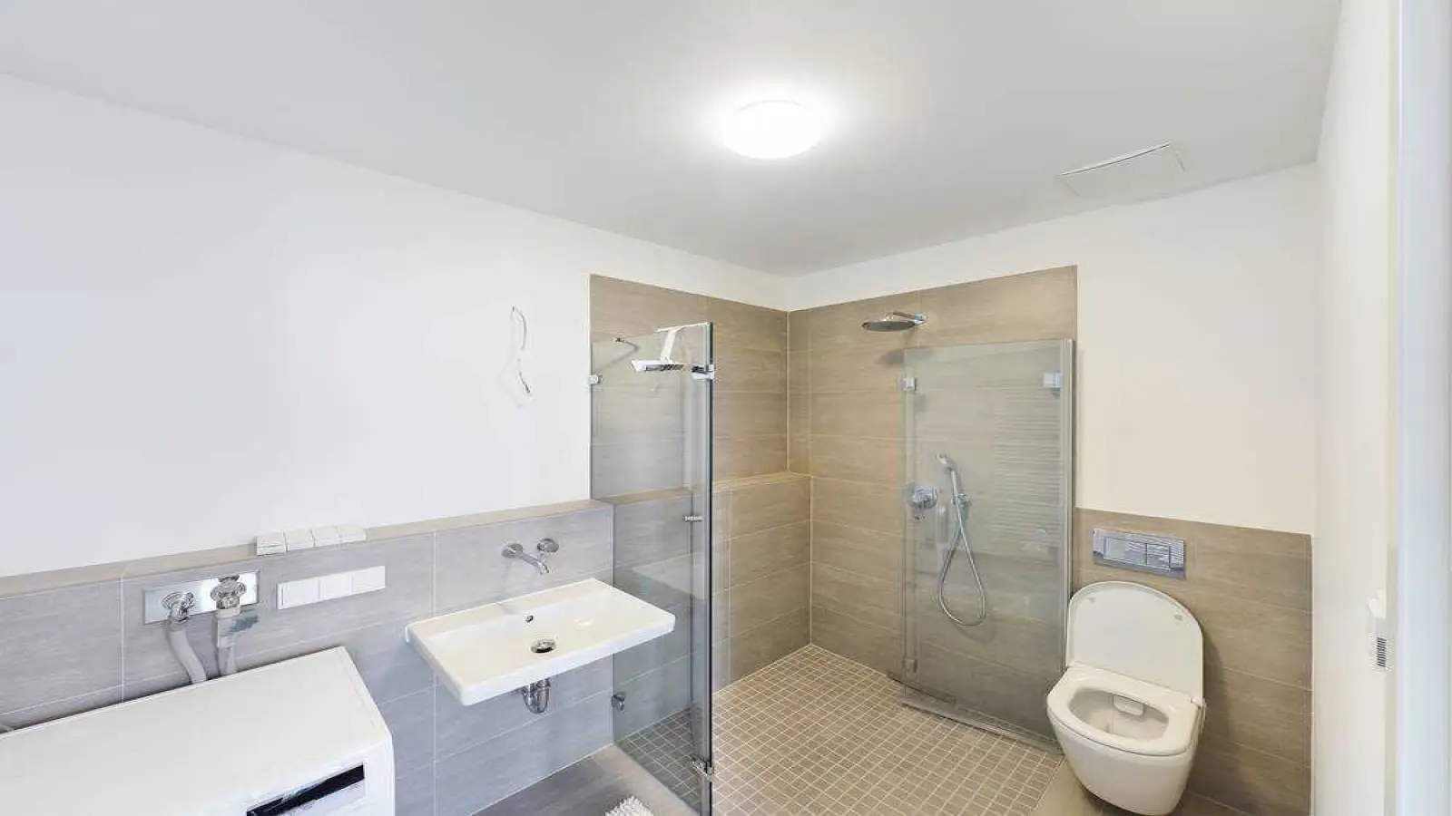 Ausstattung: Aufzug, barrierefreier Zugang, Balkon, Dusche, Fußbodenheizung, Neubau Möbel: Dusche, Spiegel, Waschmaschine, Wäschetrockner, Doppelbett, Kleiderschrank, Holzboden, Besteck, Töpfe und Küchenutensilien, Einbauküche, Kühlschrank, Geschirrspüler, Couchtisch, Bügeleisen, Esstisch, Staubsauger, Lampe, Stühle, Teppich