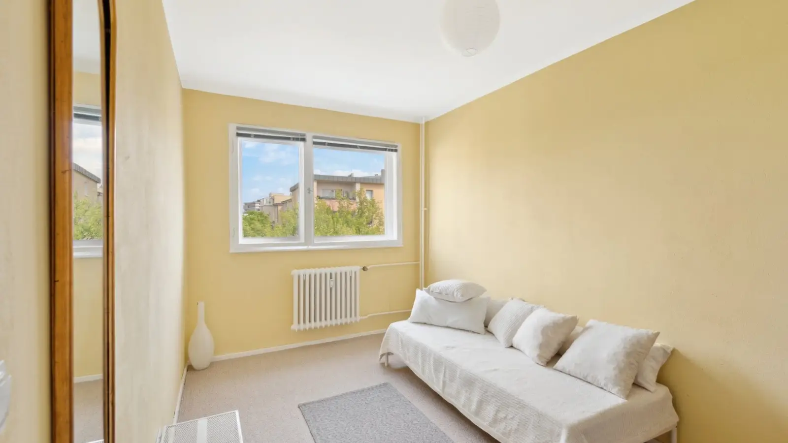 Ausstattung: Provisionsfrei, Balkon, Flur, Zentralheizung, Kernsanierung Möbel: Badewanne, Spiegel, Waschmaschine, Einzelbett, Schlafsofa, Kleiderschrank, Besteck, Töpfe und Küchenutensilien, Einbauküche, Kühlschrank, Geschirrspüler, Esstisch, Nachttischlampe, Regal, Schreibtisch, Staubsauger, Lampe, Stühle, Teppich