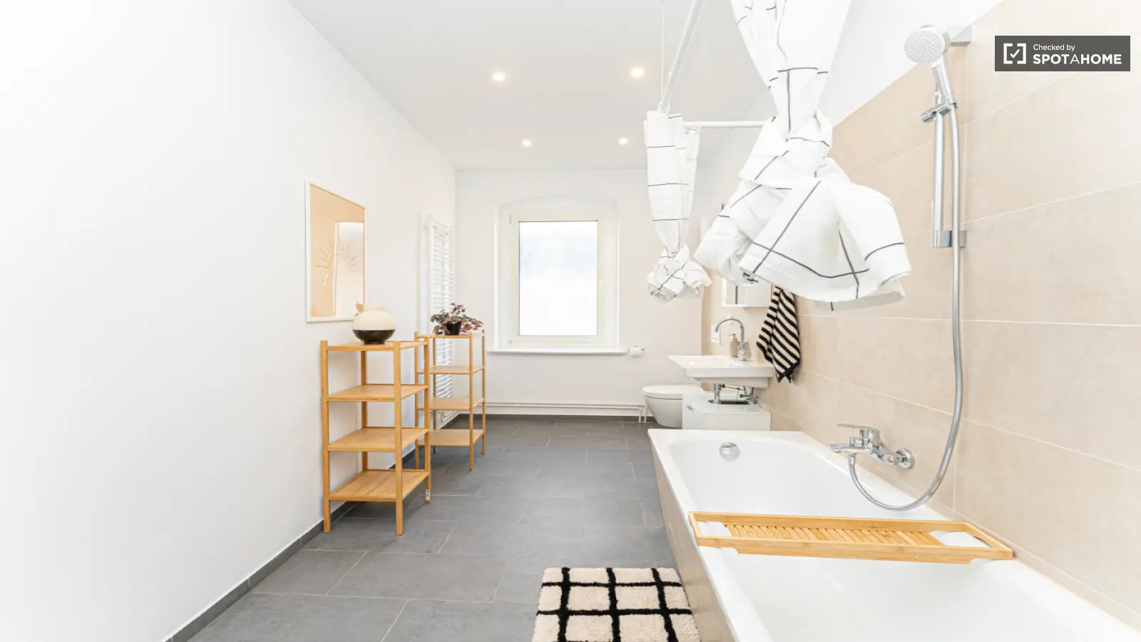 Entdecken Sie ein gut gelegenes, voll möbliertes Zimmer in einer 5-Zimmer-Wohnung in Berlin. Die Unterkunft ist von Spotahome geprüft und verfügt über eine voll ausgestattete Küche und eine eigene Waschmaschine. Nebenkosten wie Strom, Wasser, Gas und WLAN sind inklusive – für maximalen Komfort und ein sorgenfreies Wohnen.
