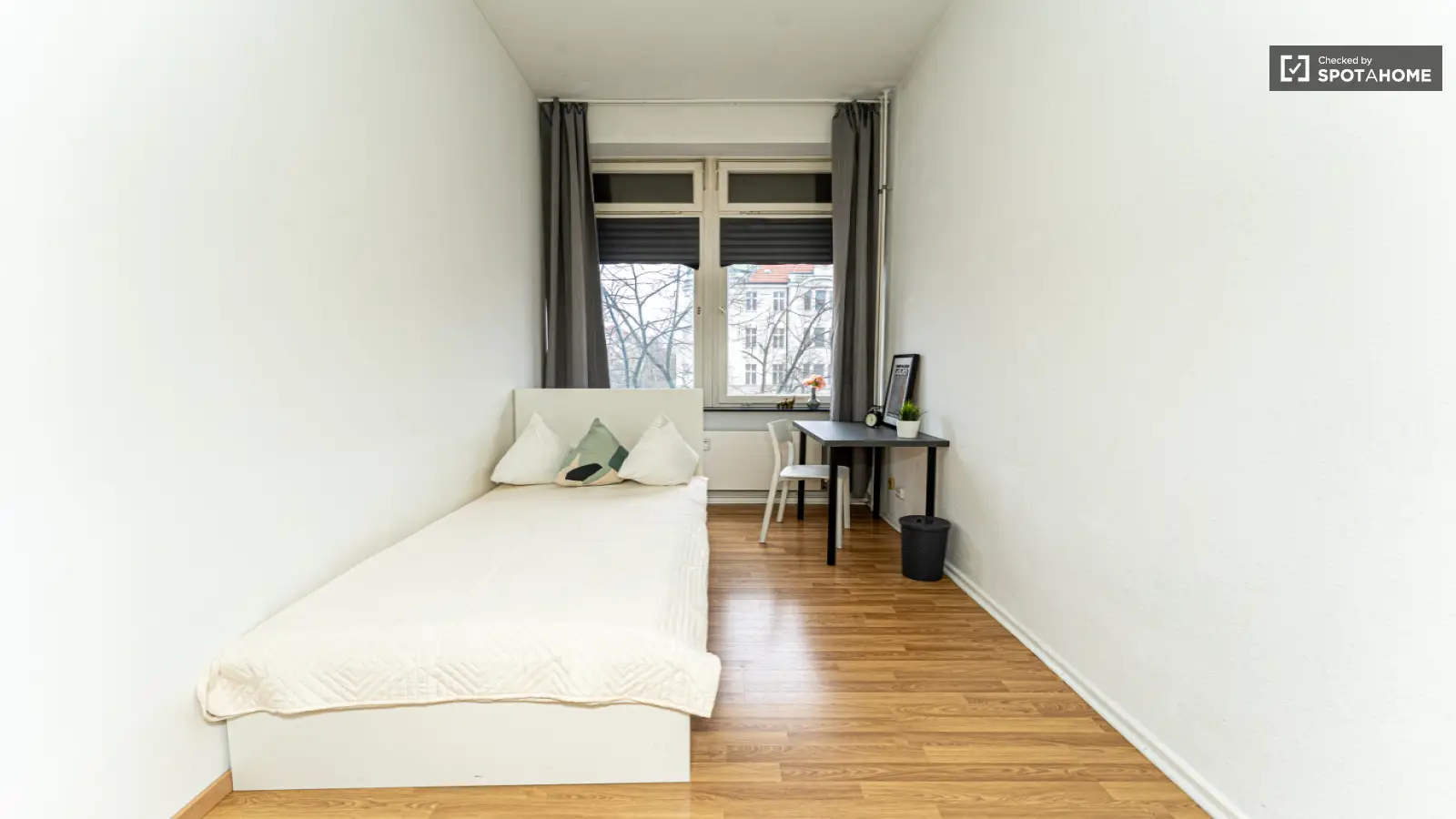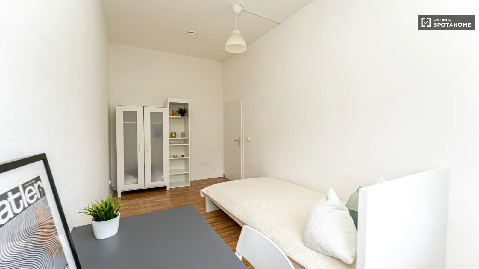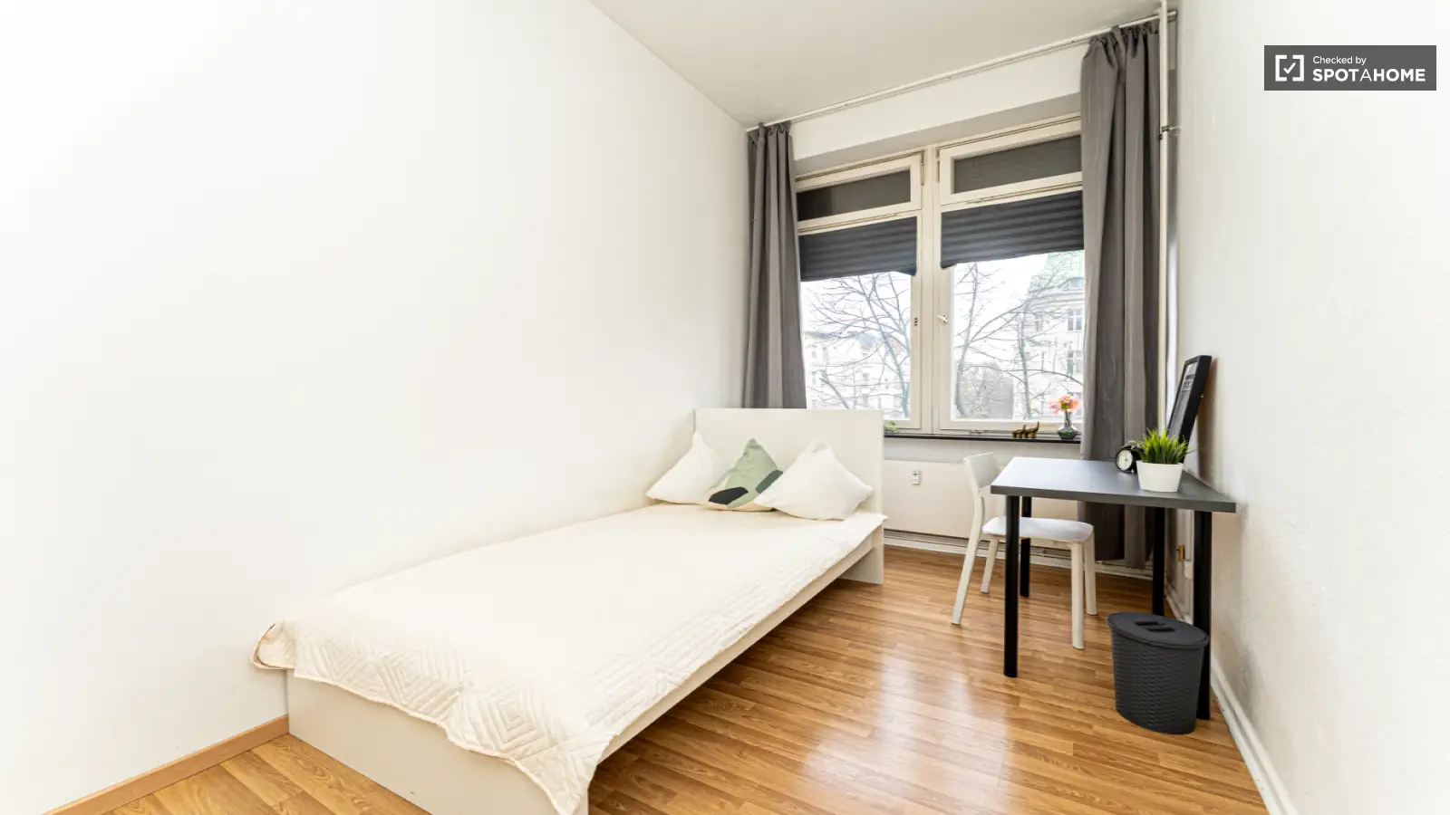 Spotahome präsentiert dieses charmante Zimmer in einer 4-Zimmer-WG in Berlin. Die Unterkunft ist komplett möbliert und mit allem Nötigen ausgestattet und verfügt über eine eigene Waschmaschine, eine voll ausgestattete Küche und Zentralheizung. Alle Nebenkosten wie Strom, Wasser, Gas, Heizung, WLAN und diverse Steuern sind inklusive. Die Wohnung wurde von Spotahome geprüft, sodass Sie sich auf die Zuverlässigkeit Ihrer Wahl verlassen können.