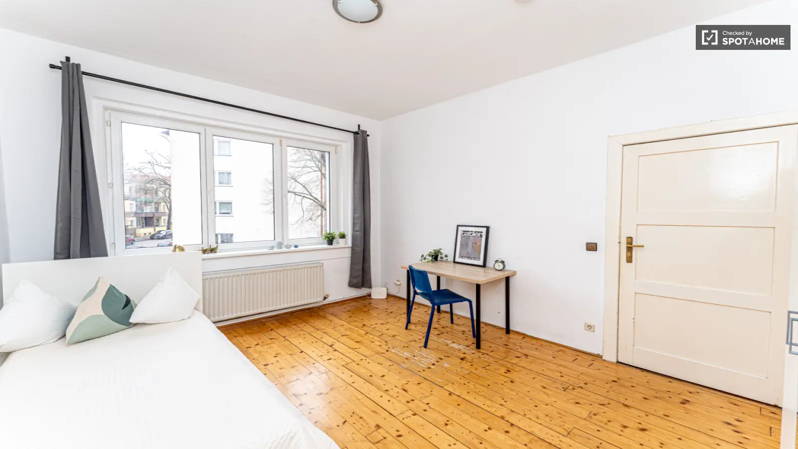 Willkommen in diesem voll möblierten Zimmer in einer 2-Zimmer-WG in Berlin. Die Unterkunft bietet einen Balkon, eine eigene Waschmaschine und eine voll ausgestattete Küche mit Geräten wie einem Backofen. Heizung, Warmwasser, Gas, WLAN, Strom und die Gemeindesteuer sind inklusive. Dank der Verifizierung durch Spotahome können Sie sorgenfrei buchen. Haustiere, Rauchen und Übernachtungsgäste sind nicht gestattet.