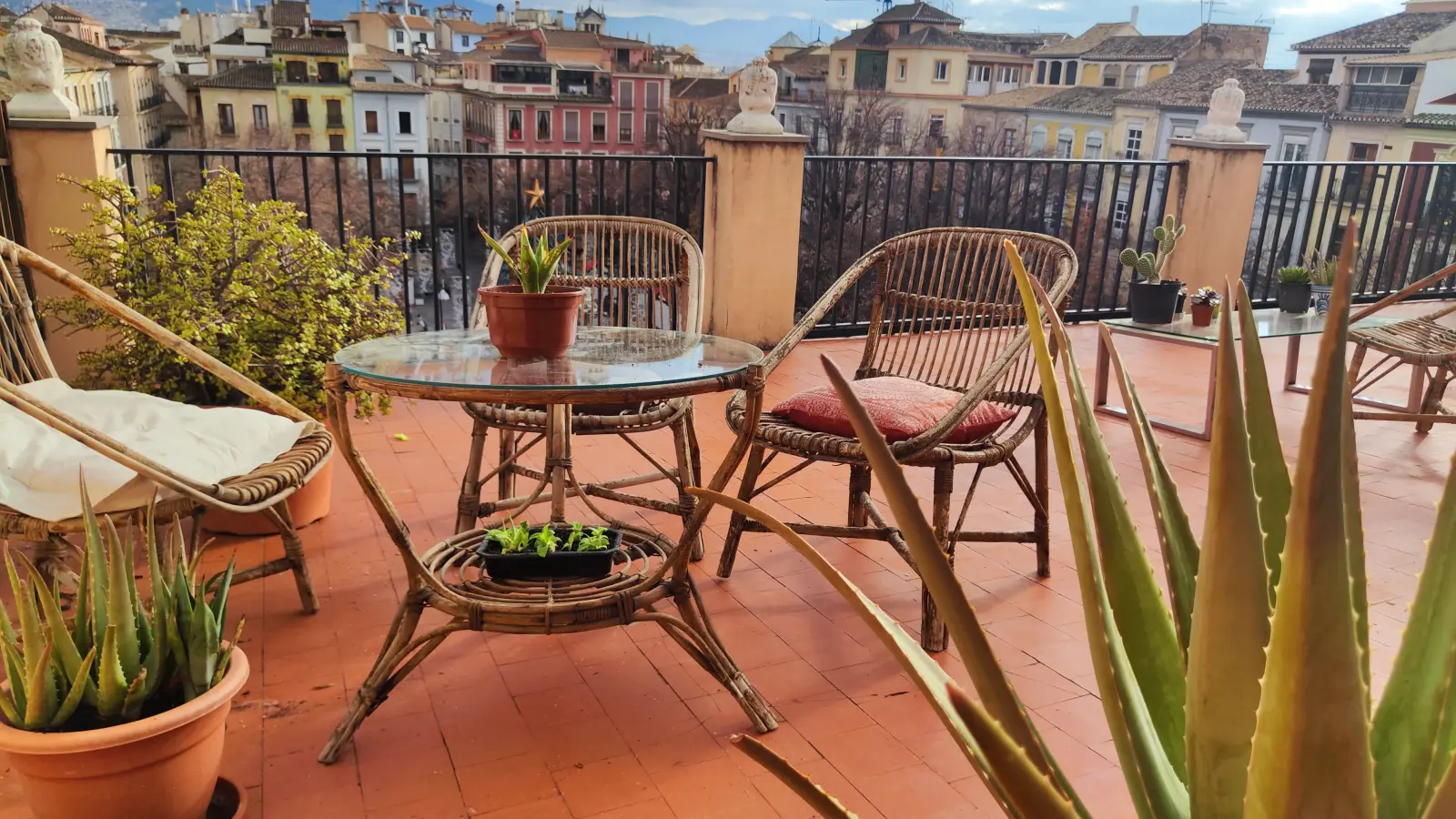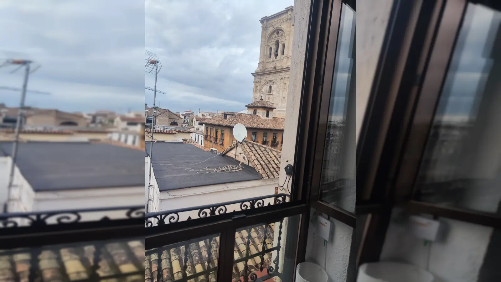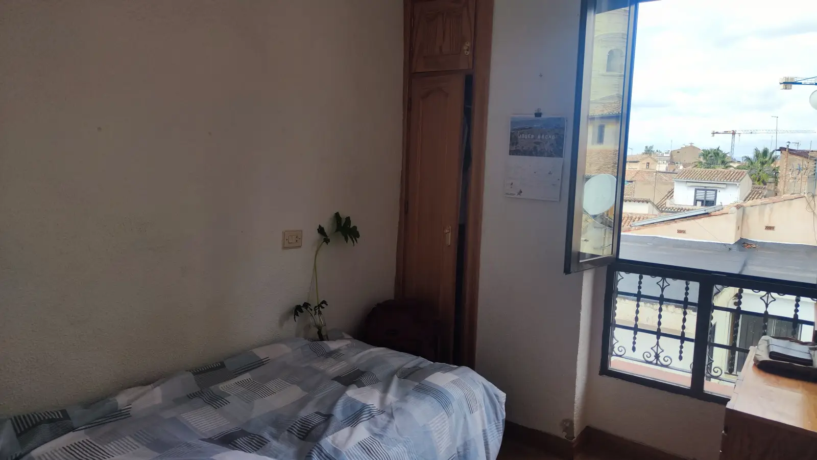 Dies ist ein Zimmer in einer voll möblierten 3-Zimmer-WG im Centro-Sagrario in Granada. Die Wohnung verfügt über individuell regulierbare Klimaanlagen, eine voll ausgestattete Küche, einen Balkon oder eine Terrasse sowie eine Gemeinschaftswaschmaschine. Strom, Wasser, Gas und WLAN sind in der Miete enthalten.