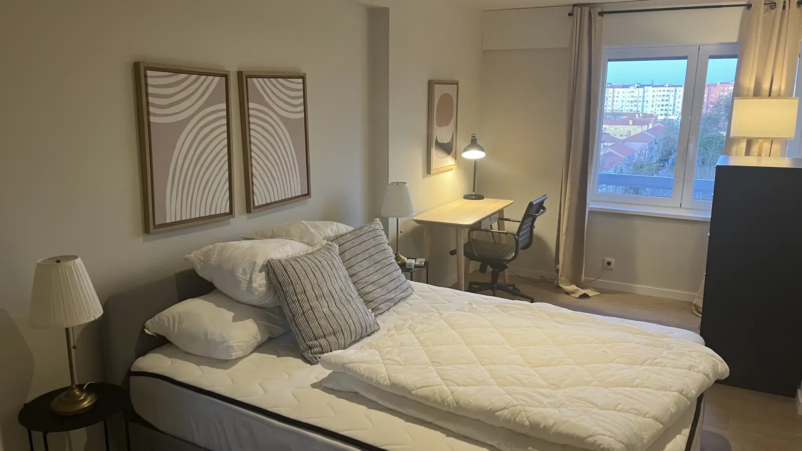 Diese geräumige 2-Zimmer-Wohnung in Lissabon ist komplett möbliert und bietet moderne Annehmlichkeiten für ein komfortables Wohnen. Die Küche ist bestens ausgestattet mit Geschirrspüler und Backofen, und die Wohnung verfügt über eine Klimaanlage in jeder Einheit. Ein Parkplatz steht Ihnen ebenfalls zur Verfügung. Bitte beachten Sie, dass Haustiere und Rauchen in dieser Unterkunft nicht gestattet sind. Obwohl die Wohnung nicht persönlich von einem Spotahome-Mitarbeiter überprüft wurde, werden alle unsere Vermieter sorgfältig geprüft.