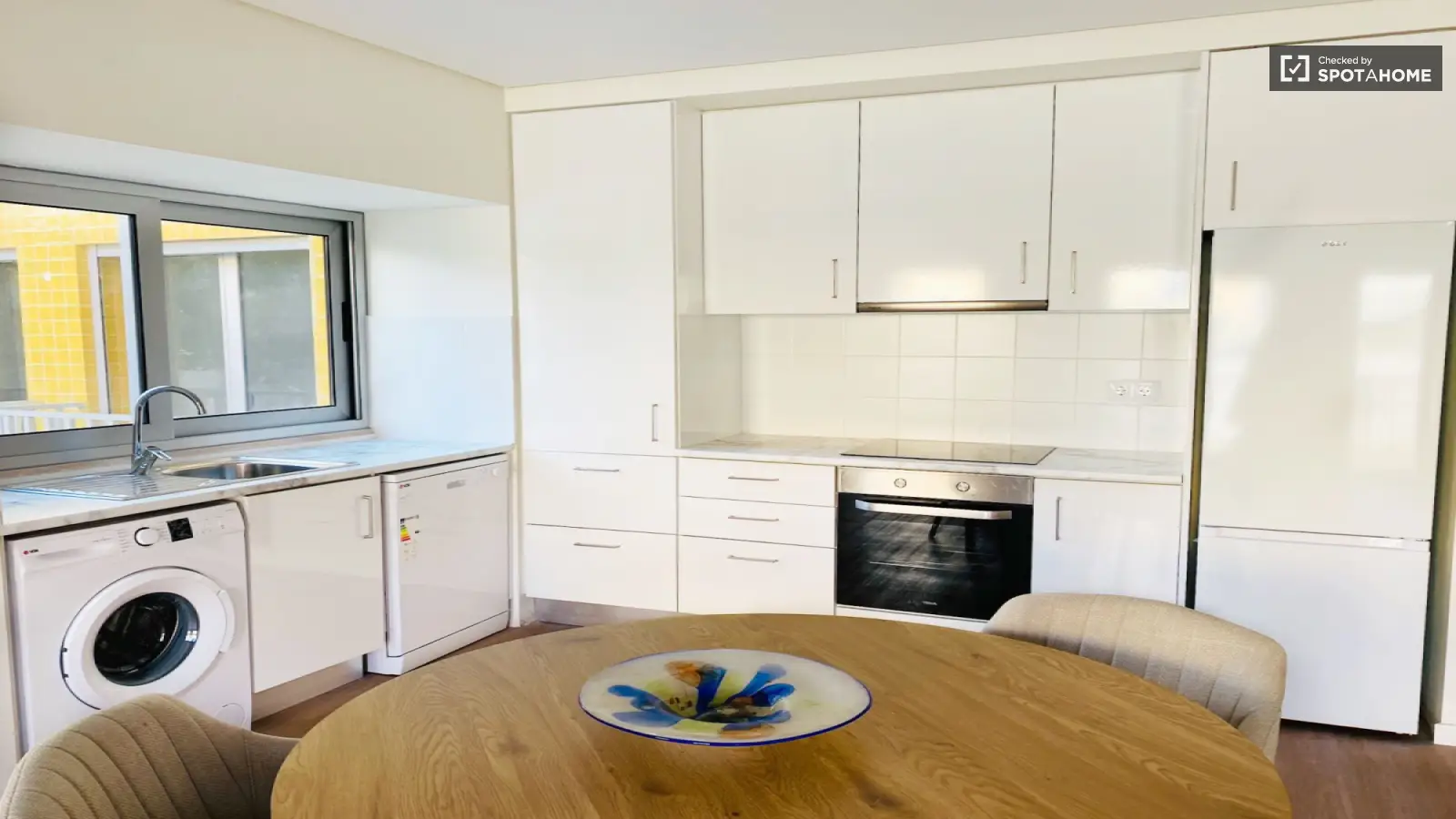 Entdecken Sie dieses gemütliche 1-Zimmer-Apartment in Lissabon. Die möblierte Unterkunft verfügt über individuell regulierbare Klimaanlagen, eine voll ausgestattete Küche und eine eigene Waschküche mit Waschmaschine und Trockner. Ideal für Berufstätige, Paare oder Studenten: Das Apartment bietet moderne Annehmlichkeiten wie Geschirrspüler, Backofen und Fernseher. WLAN ist inklusive. Spotahome hat dieses Angebot persönlich geprüft und sichergestellt, dass alle Details unseren hohen Qualitätsstandards entsprechen.
