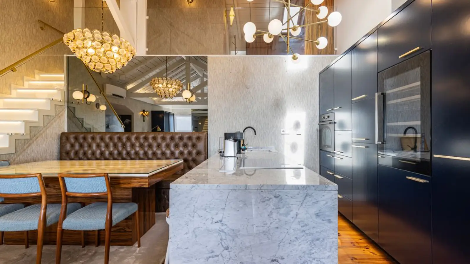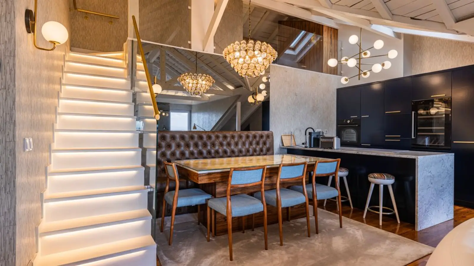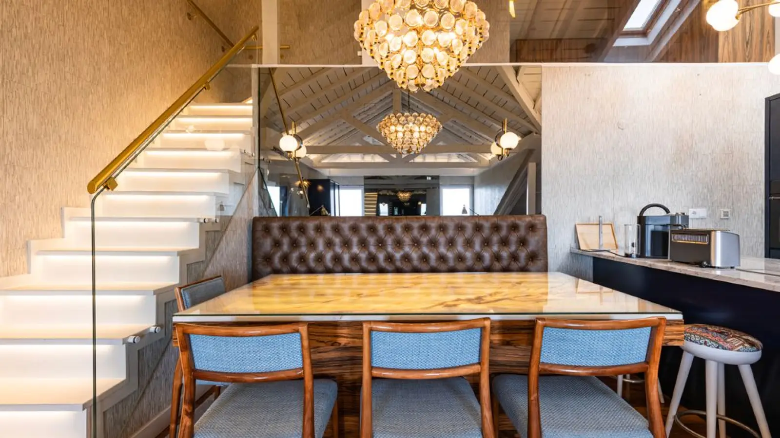 Designer-Essbereich: Ein Marmortisch mit integrierter Beleuchtung lädt zu unvergesslichen Dinnern ein.