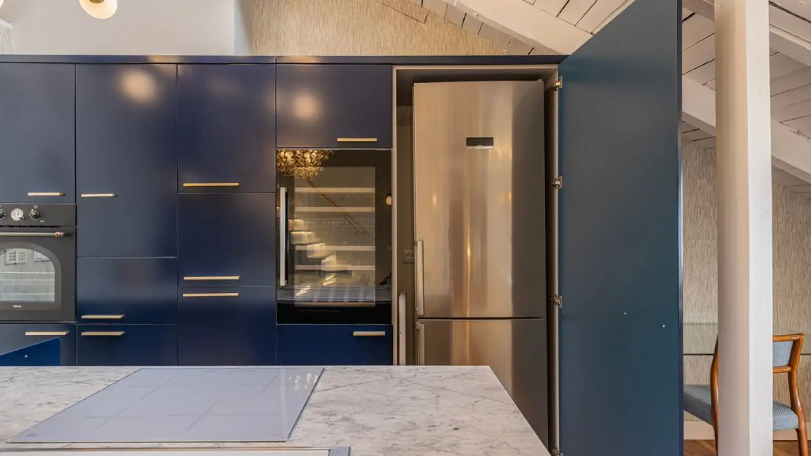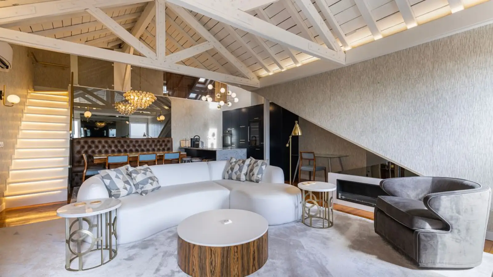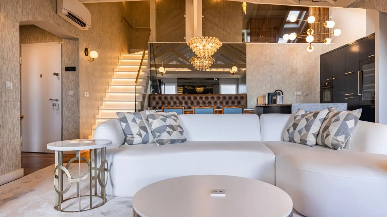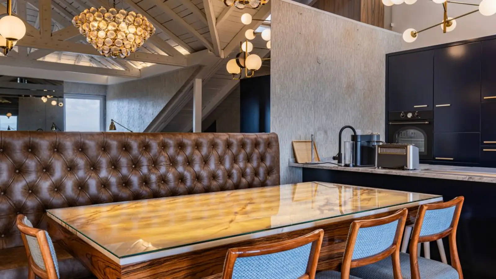 Designer-Essbereich: Ein Marmortisch mit integrierter Beleuchtung lädt zu unvergesslichen Dinnern ein.