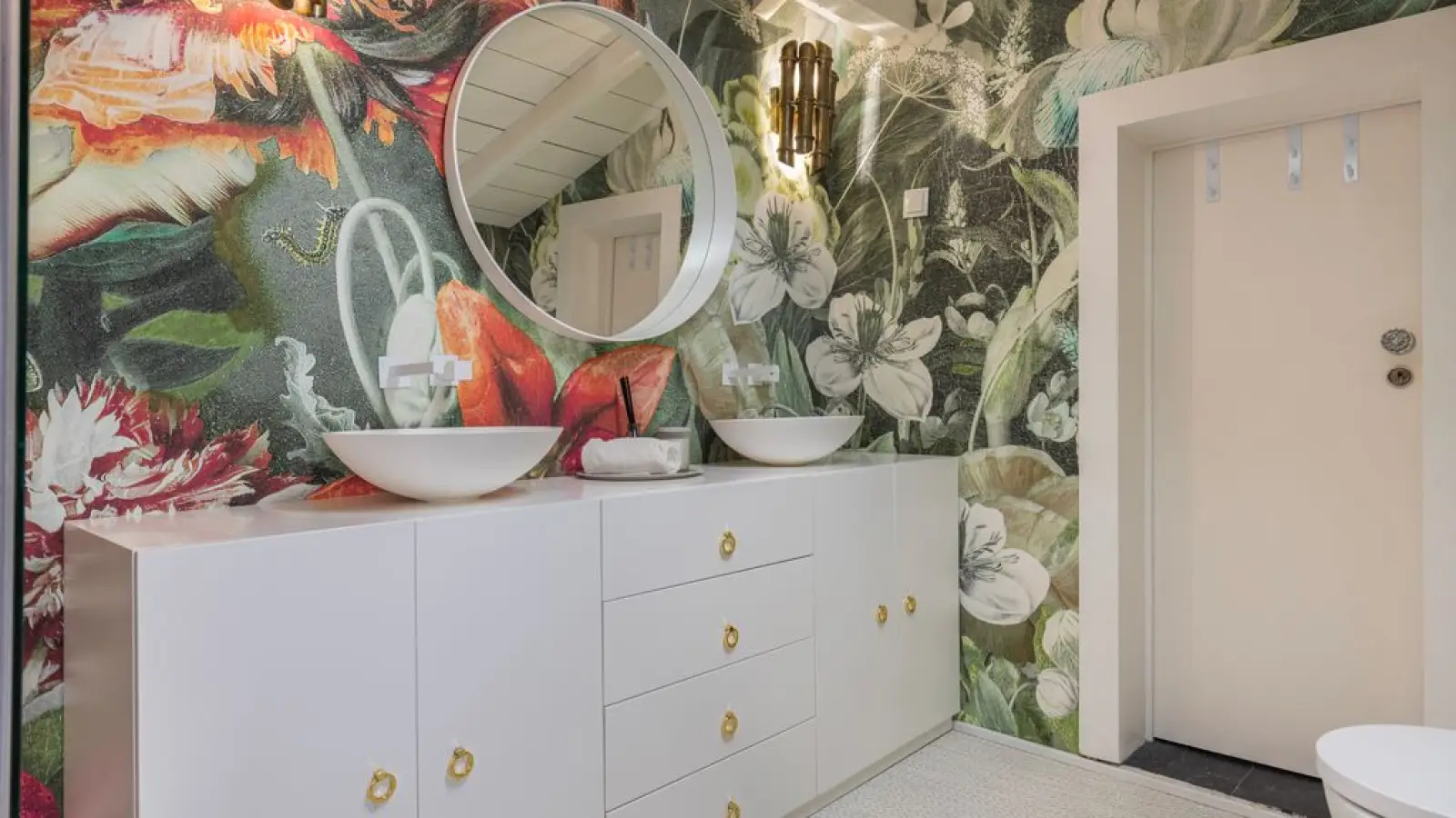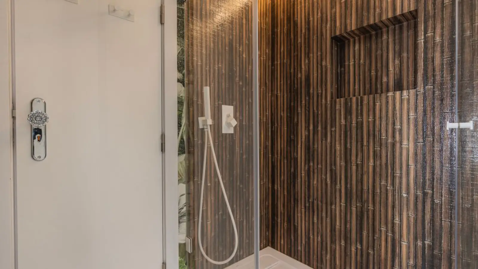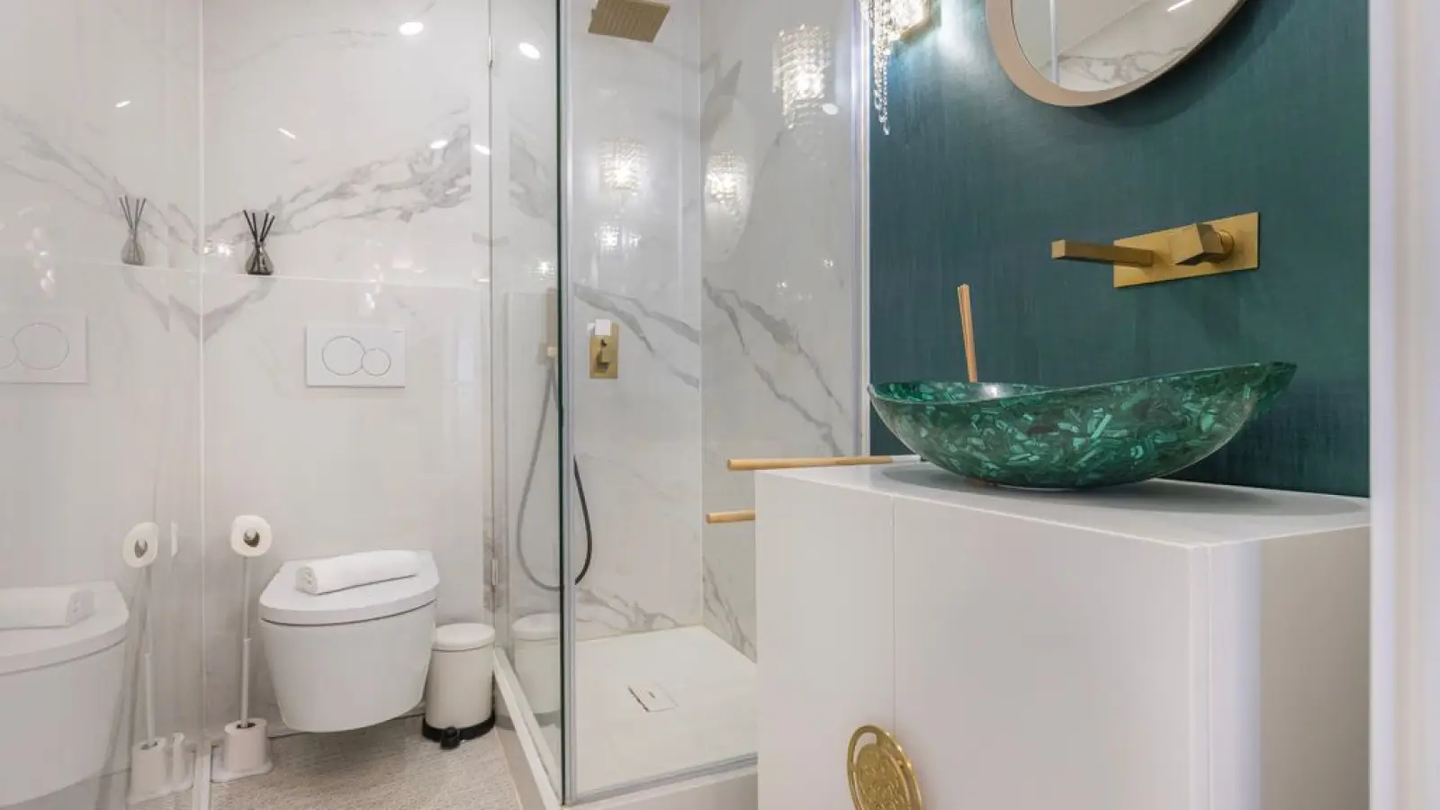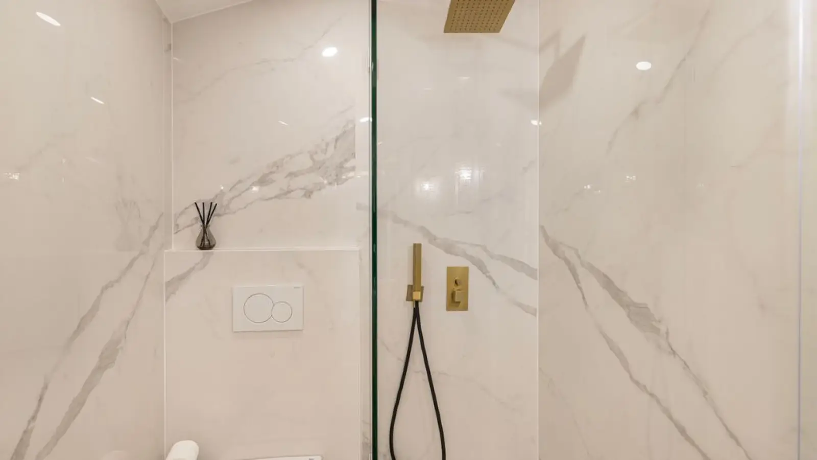 Elegantes Badezimmer (Erdgeschoss) – Moderne Ausstattung mit ebenerdiger Dusche und edlen Details.