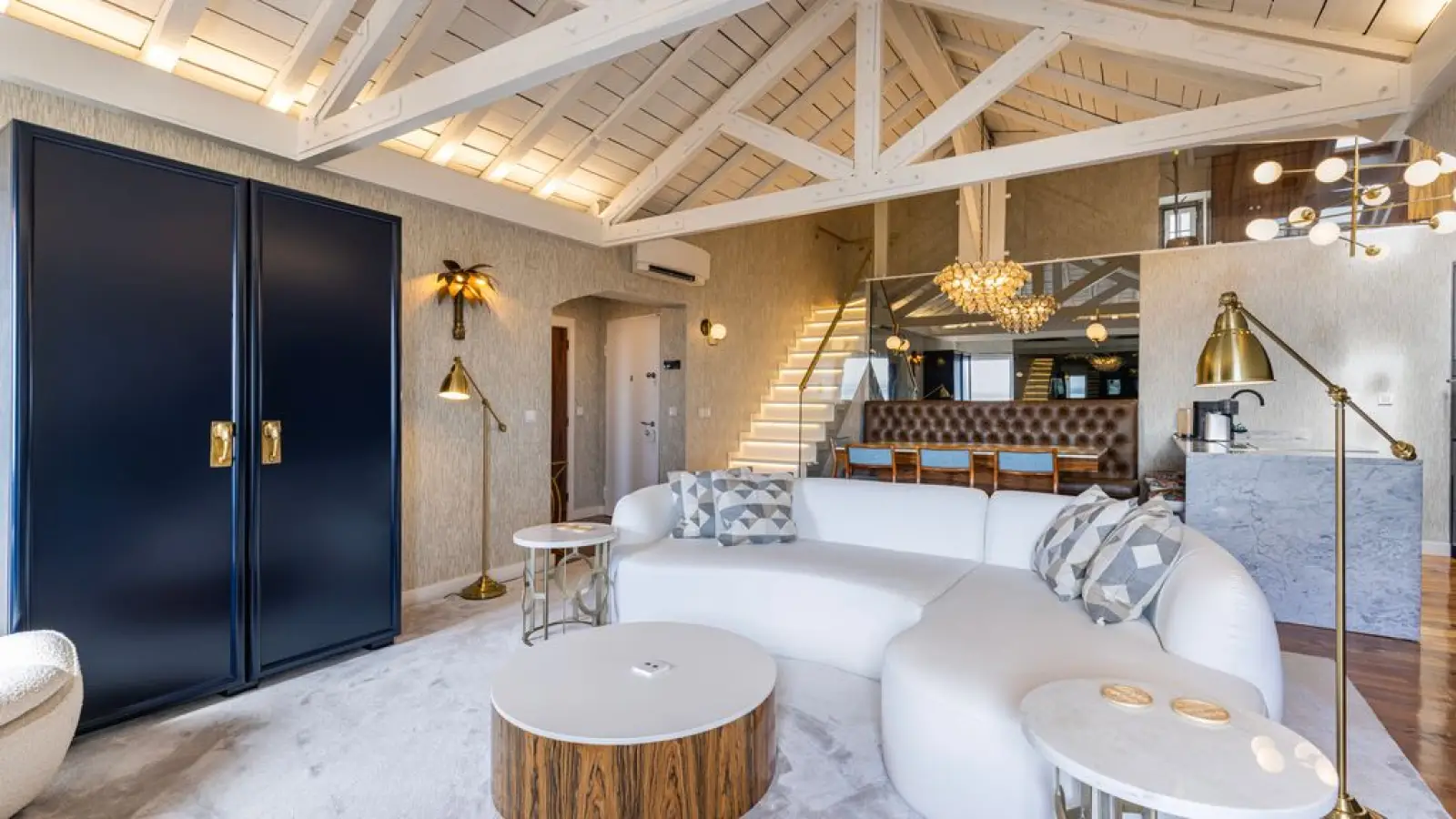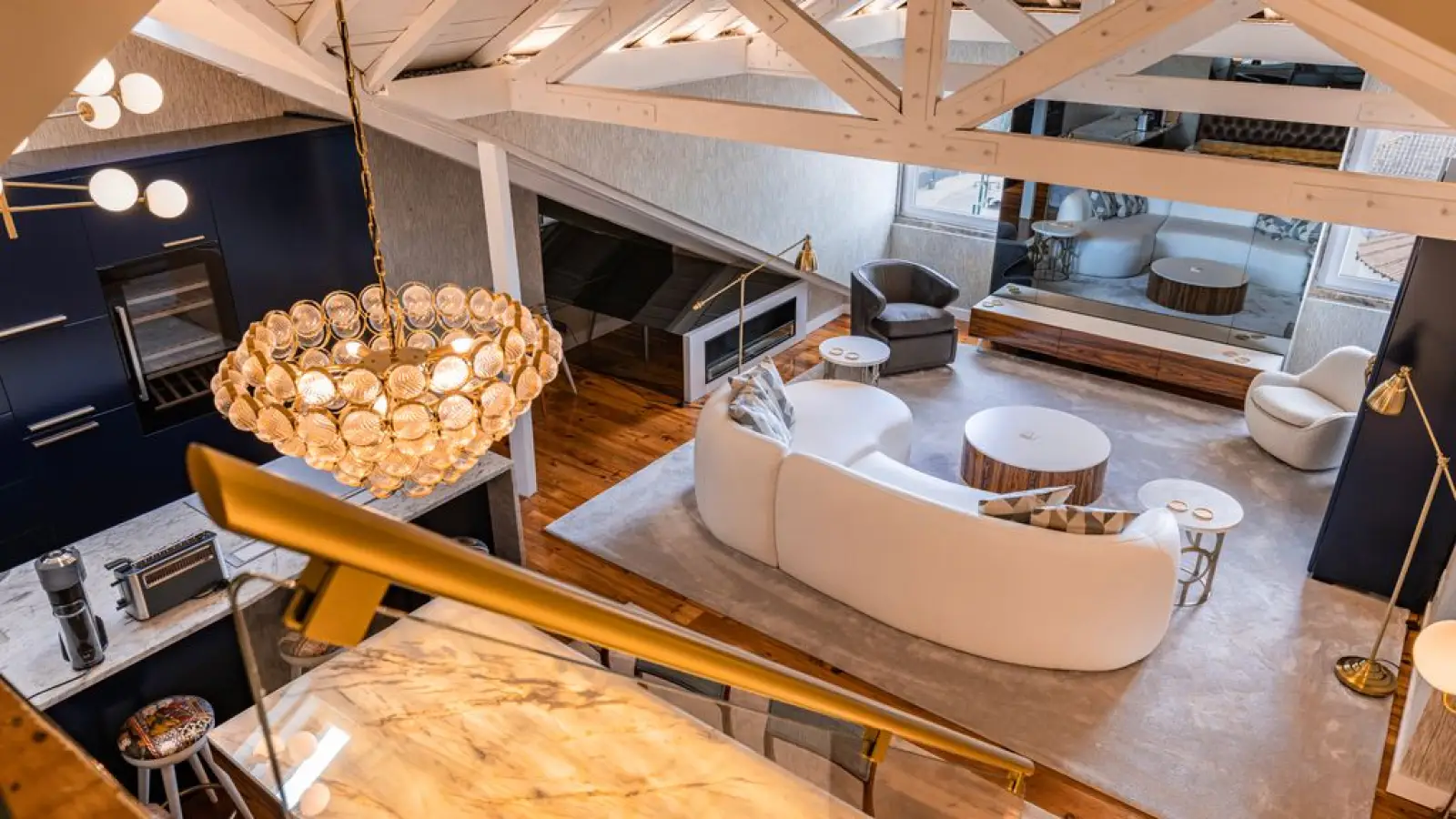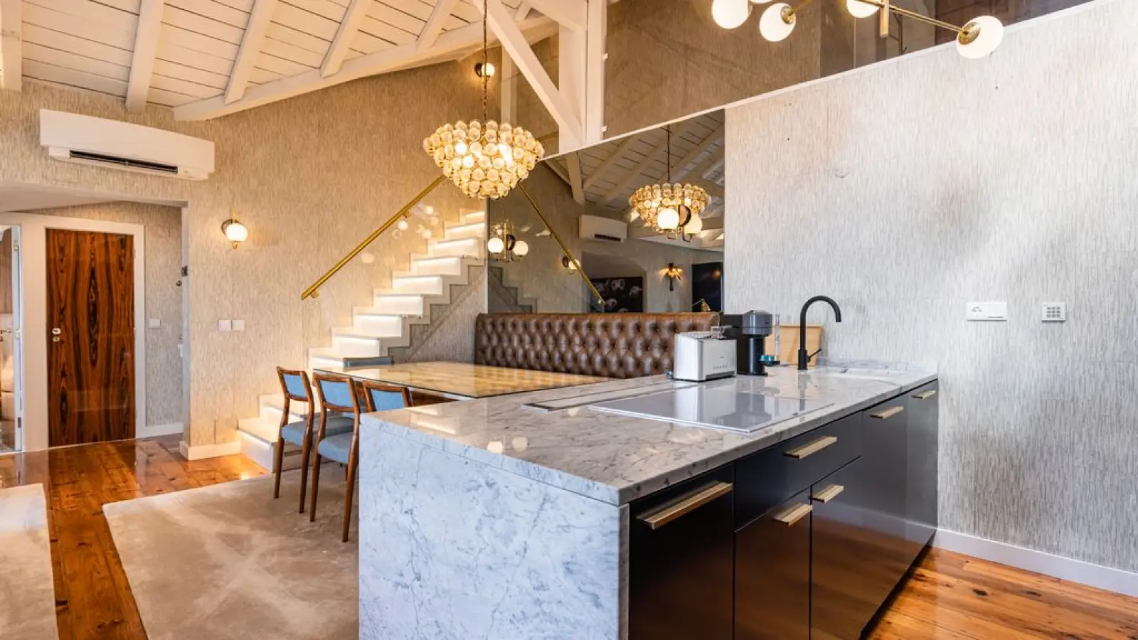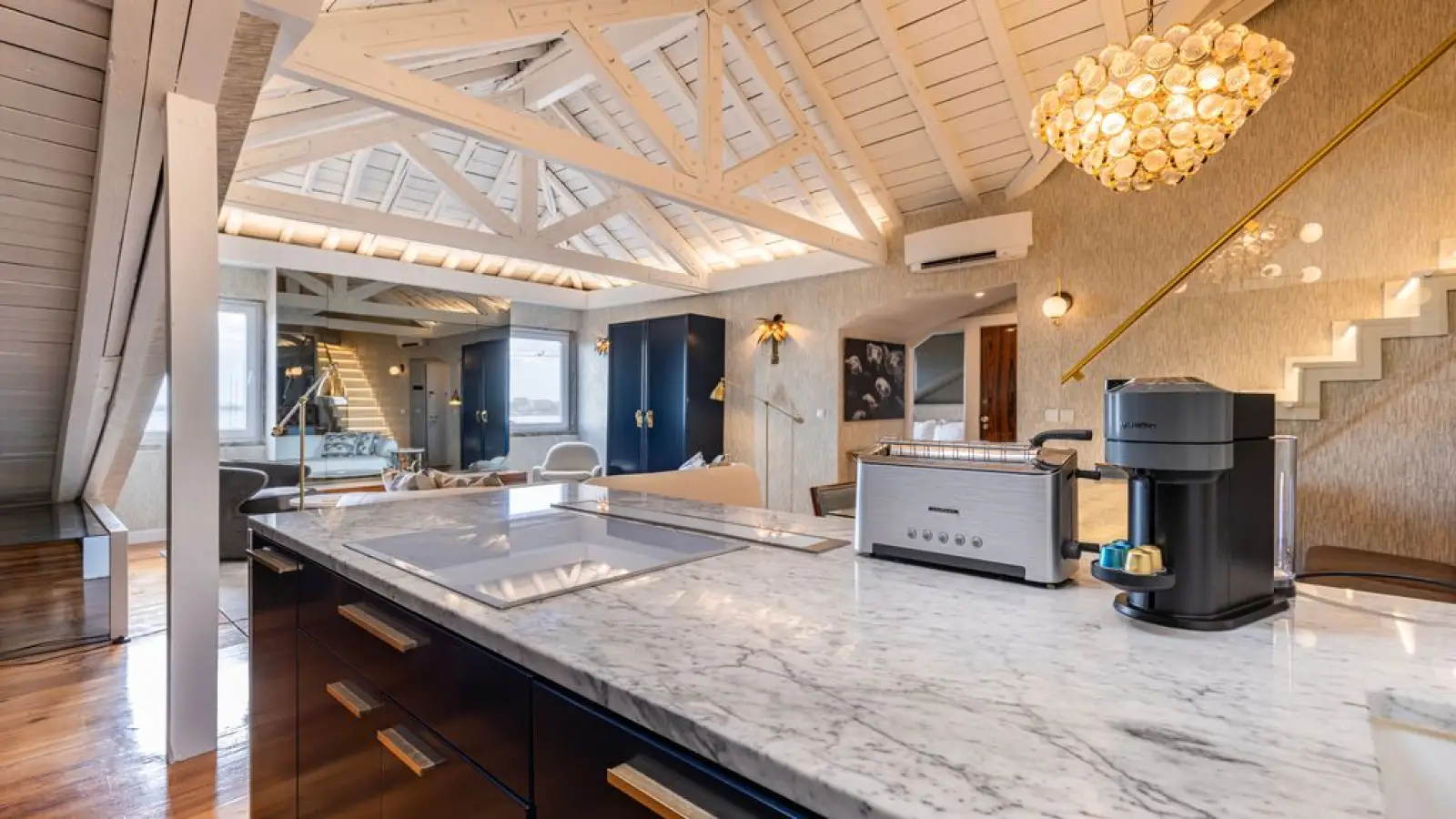 Tritt ein in ein elegantes Maisonette-Apartment, in dem zeitgenössischer Luxus auf atemberaubenden Flussblick trifft. Dieses Apartment wurde für Gäste konzipiert, die Wert auf elegante Details und großzügige Räume legen. Es bietet eine harmonische Verbindung von Komfort, Technologie und anspruchsvollem Design auf zwei wunderschön gestalteten Etagen.