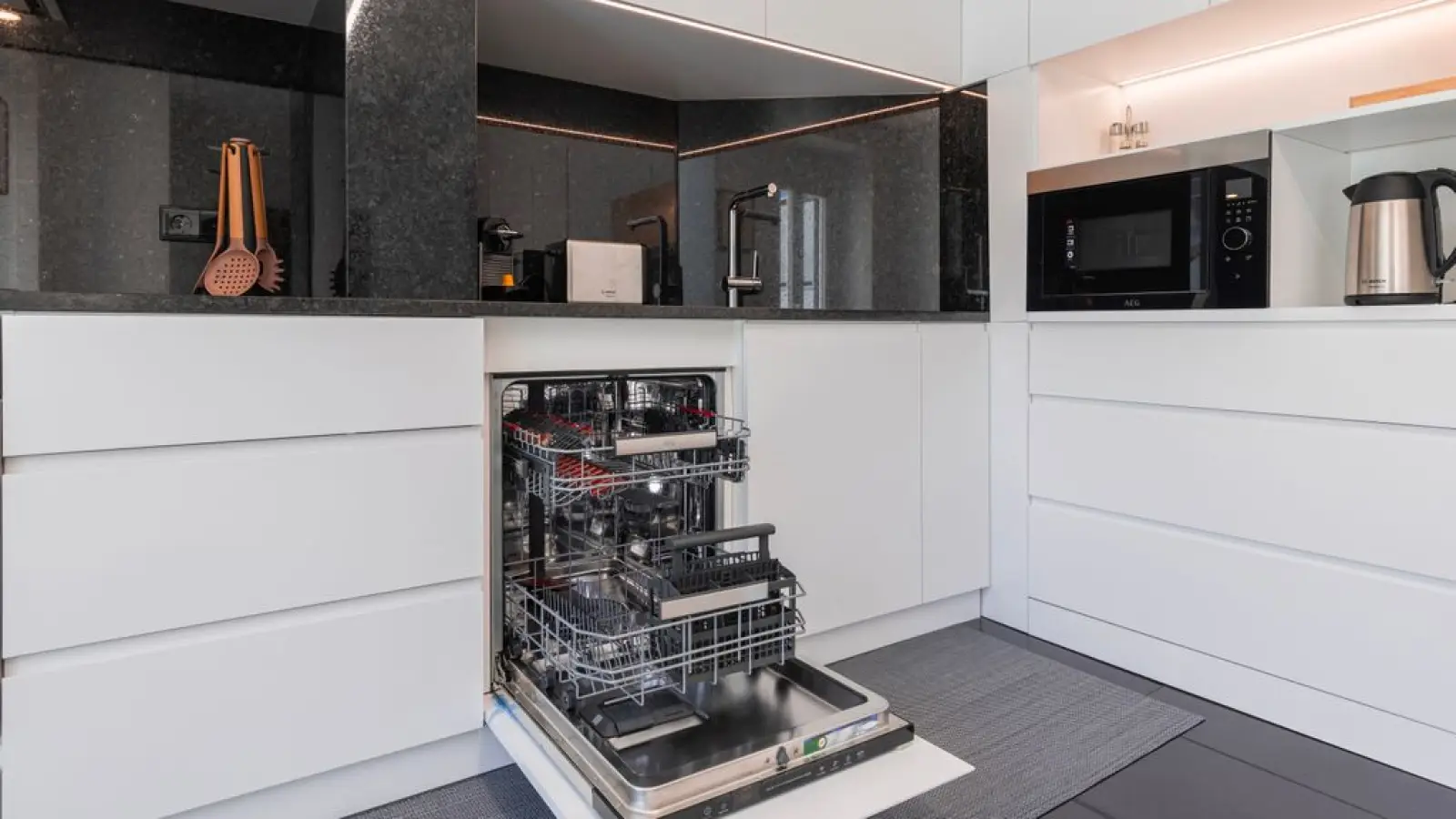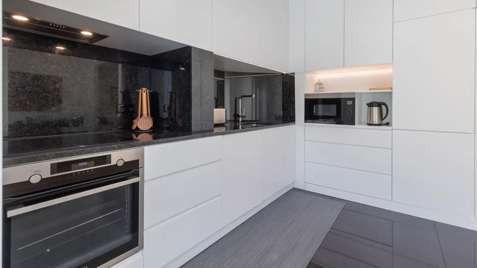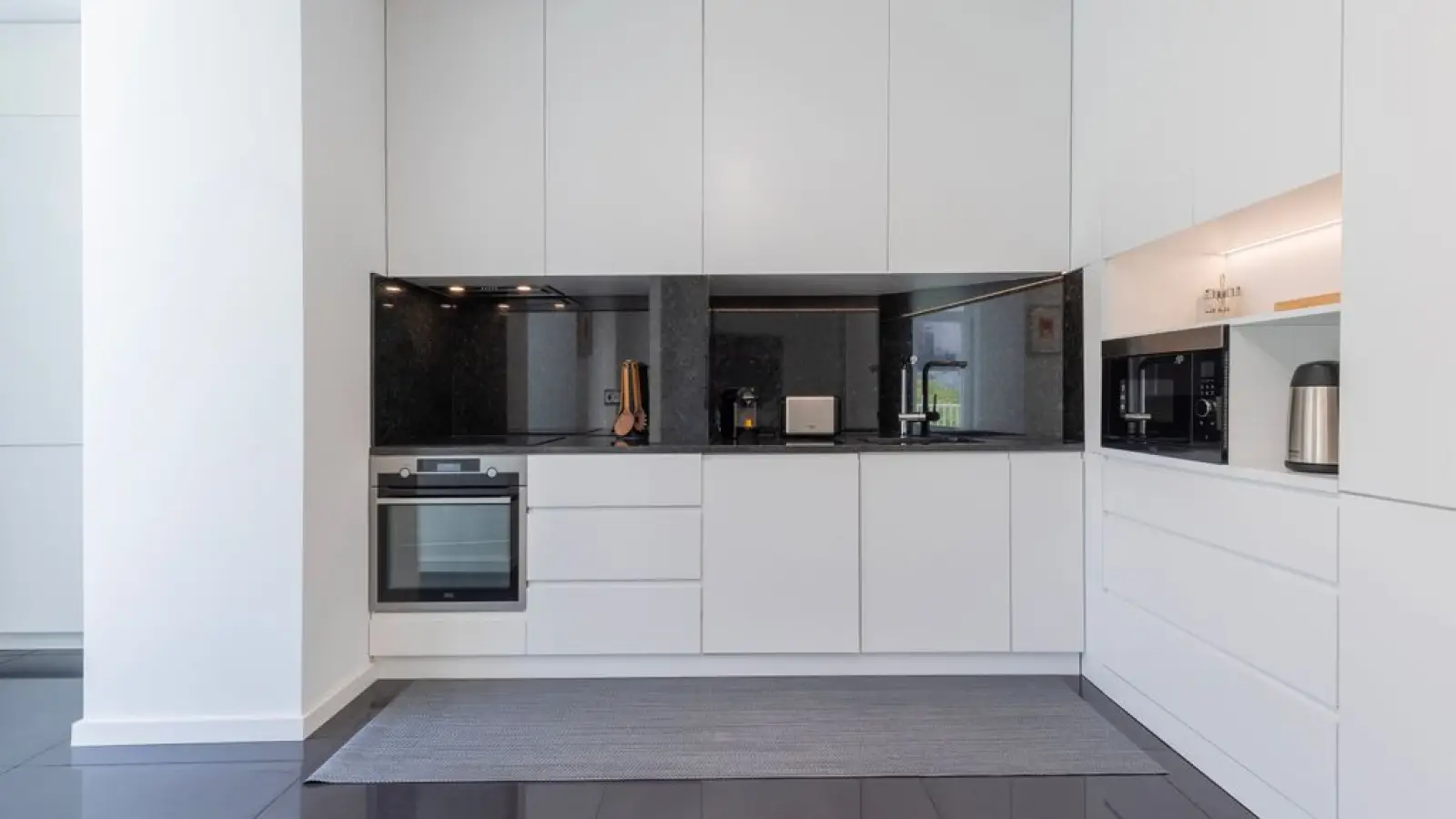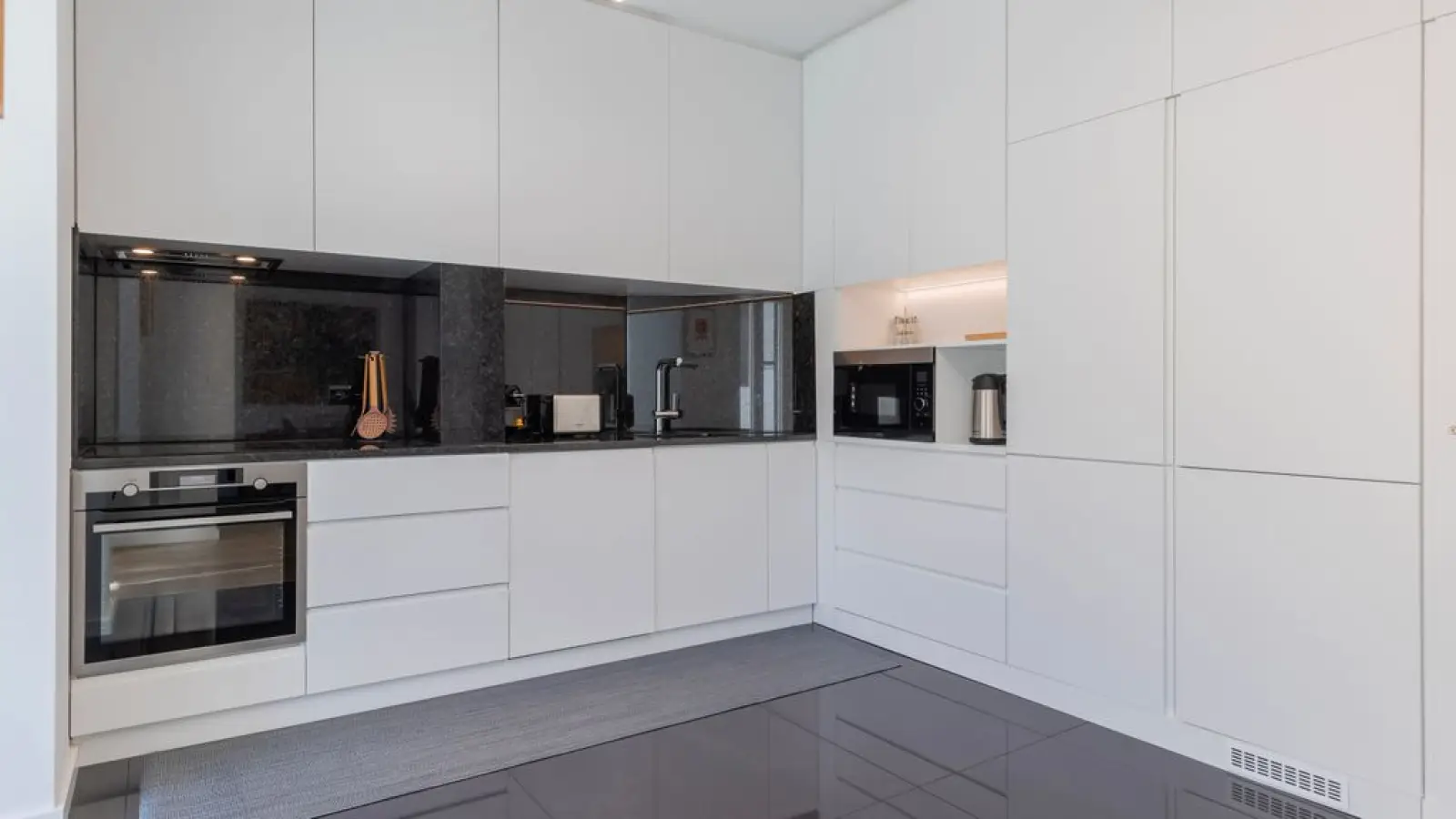 Voll ausgestattete Küchenzeile mit modernen Geräten