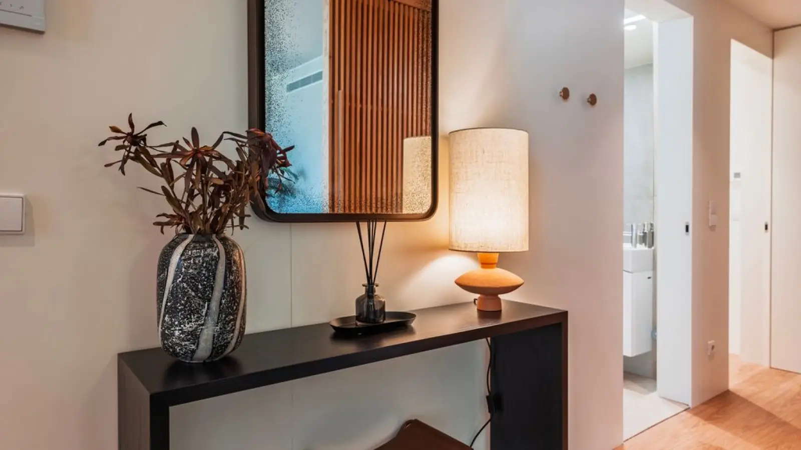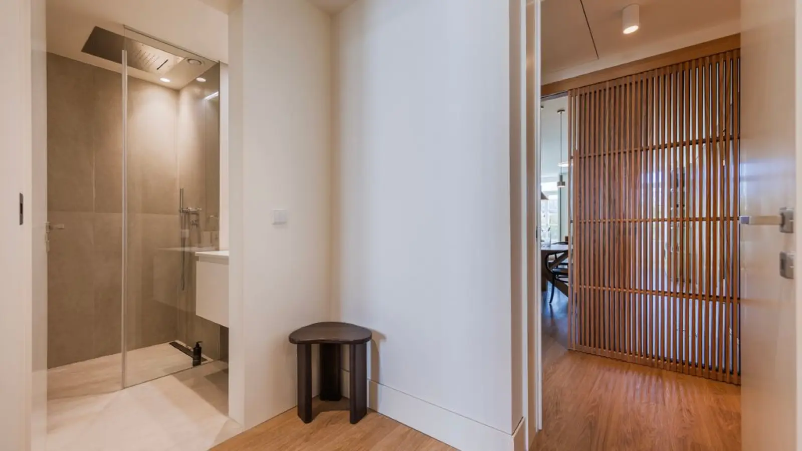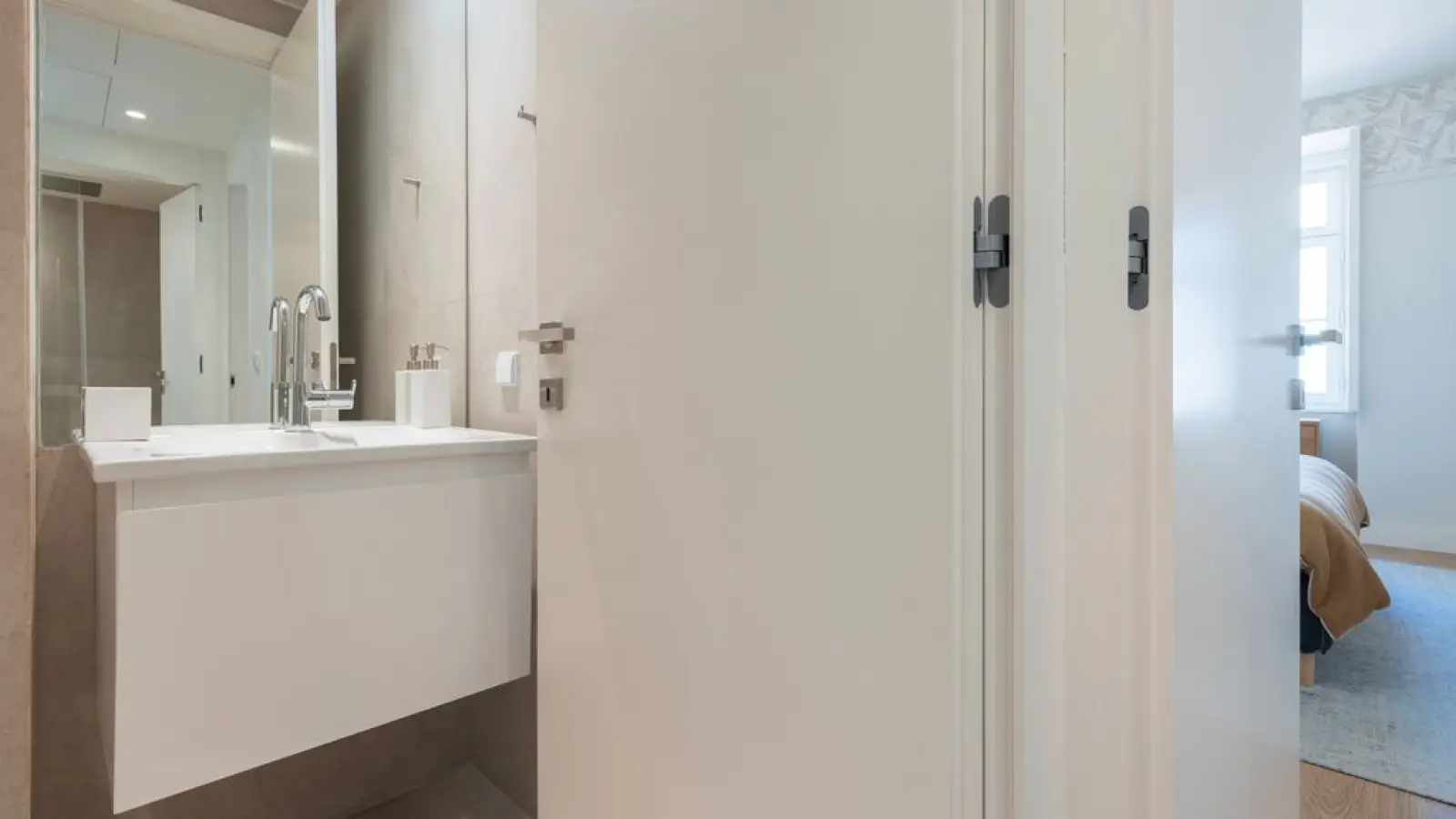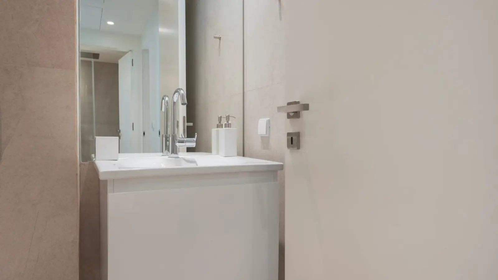 Die Wohnung verfügt über 2,5 moderne Badezimmer mit großen Spiegeln, WC, Waschbecken, Bidet, Dusche und Haartrockner.
