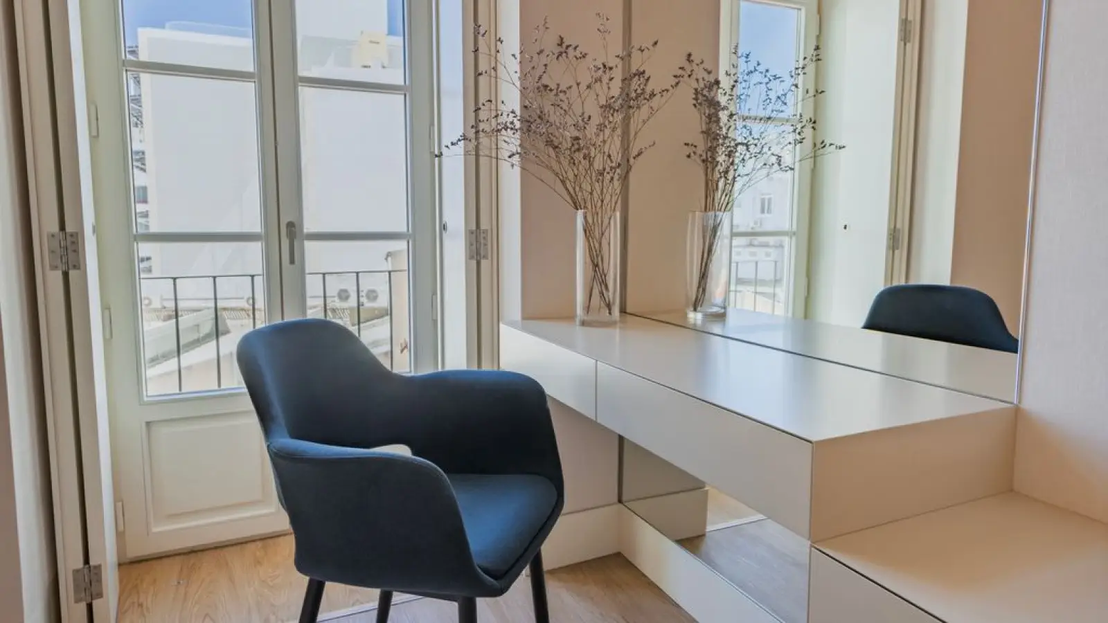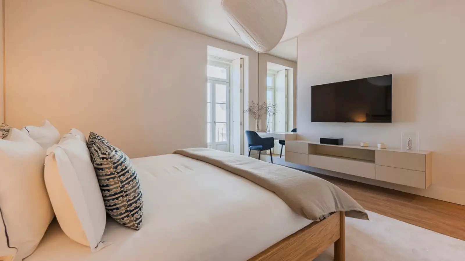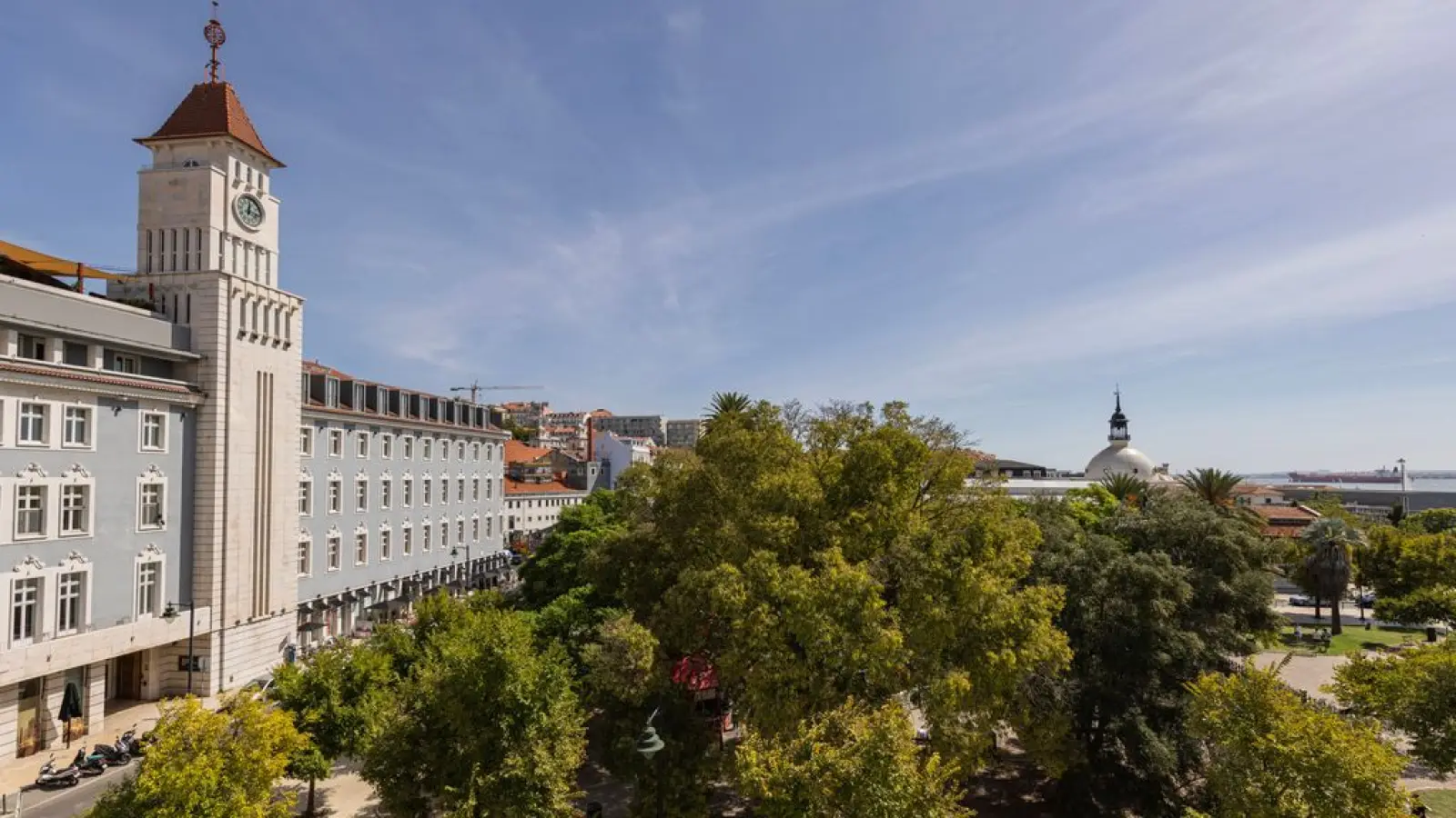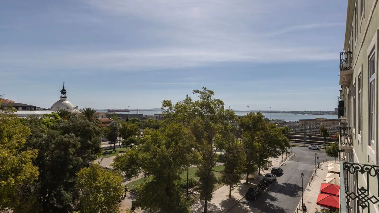 Die Wohnung hat große Fenster mit einem wunderschönen Blick auf den Tejo.