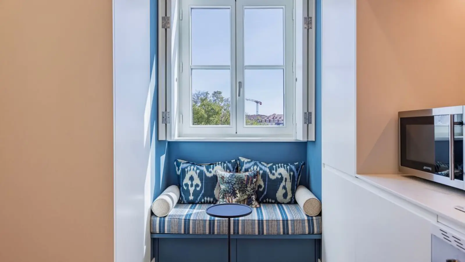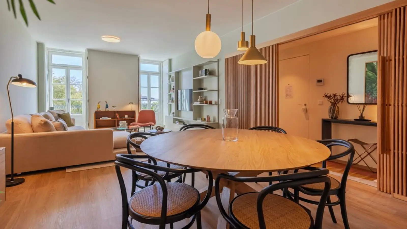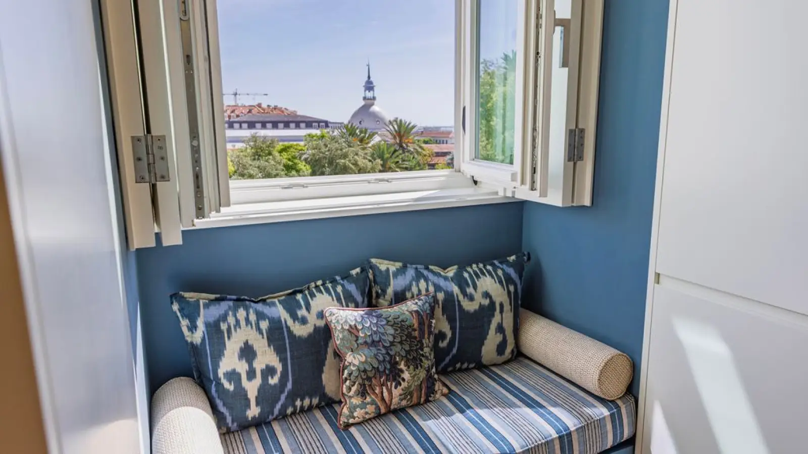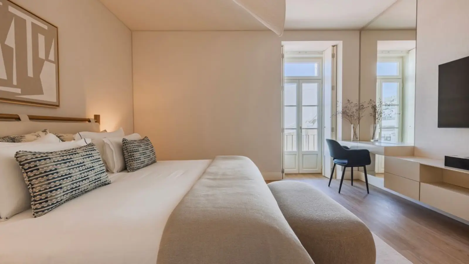 Die Wohnung hat große Fenster mit einem wunderschönen Blick auf den Tejo.