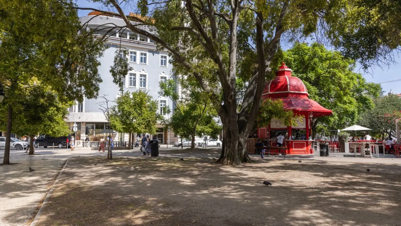 Direkt vor dem Gebäude befindet sich ein öffentlicher Garten mit Kinderspielplatz.