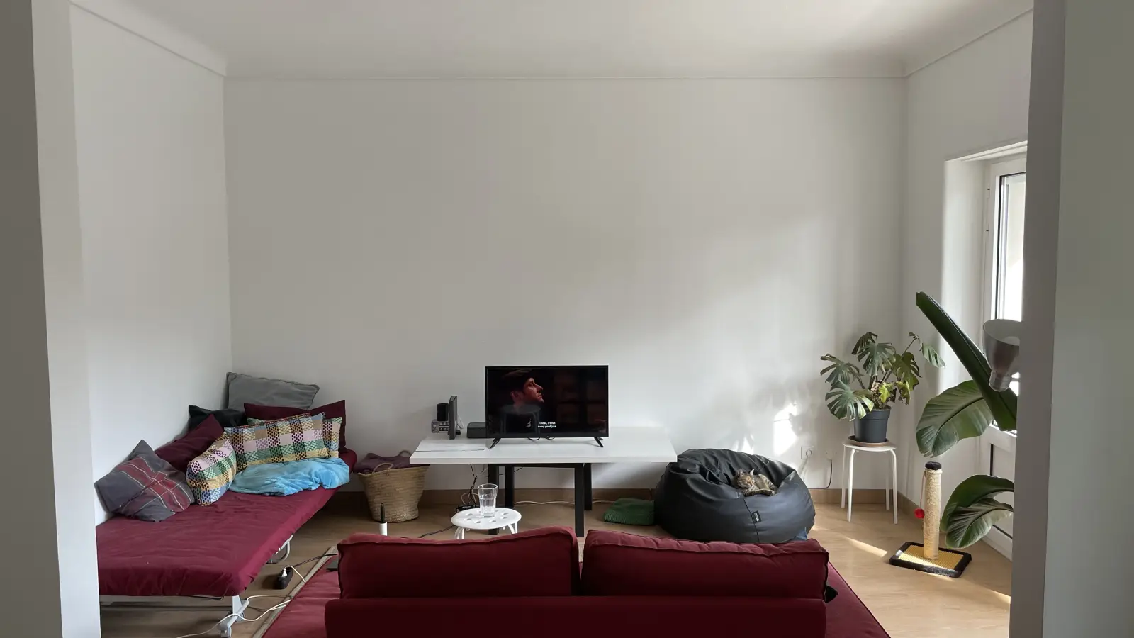 Dies ist ein privates Zimmer in einer 3-Zimmer-WG in Lissabon. Zimmer und Wohnung sind möbliert und verfügen über eine voll ausgestattete Küche. Waschmaschine und Geschirrspüler werden gemeinschaftlich genutzt. Zur Wohnung gehört ein Balkon oder eine Terrasse. Haustiere sind willkommen, Rauchen ist jedoch nicht gestattet.