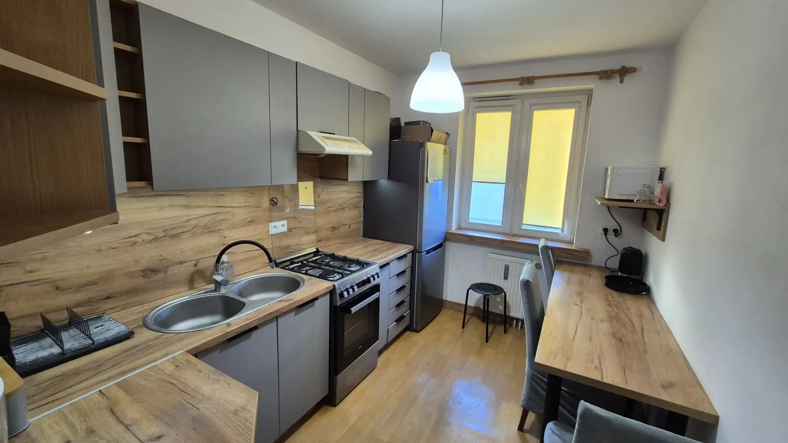 Suchen Sie eine komfortable und praktische Unterkunft in Lublin? Dieses möblierte Zimmer in einer 3-Zimmer-WG könnte perfekt für Sie sein. Die Wohnung verfügt über eine Zentralheizung, einen Balkon oder eine Terrasse für frische Luft und eine voll ausgestattete Küche mit Trockner, Backofen und Gemeinschaftswaschmaschine. Die Wohnung hat keinen Aufzug und Parkplätze stehen den Mietern zur Verfügung. Bitte beachten Sie, dass Rauchen und Haustiere nicht gestattet sind.