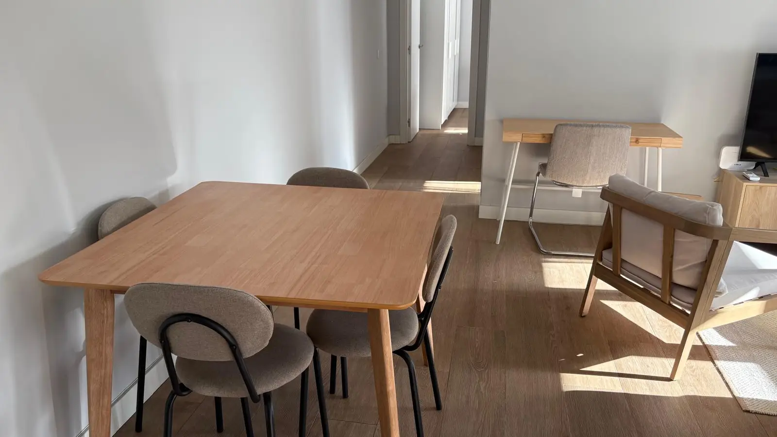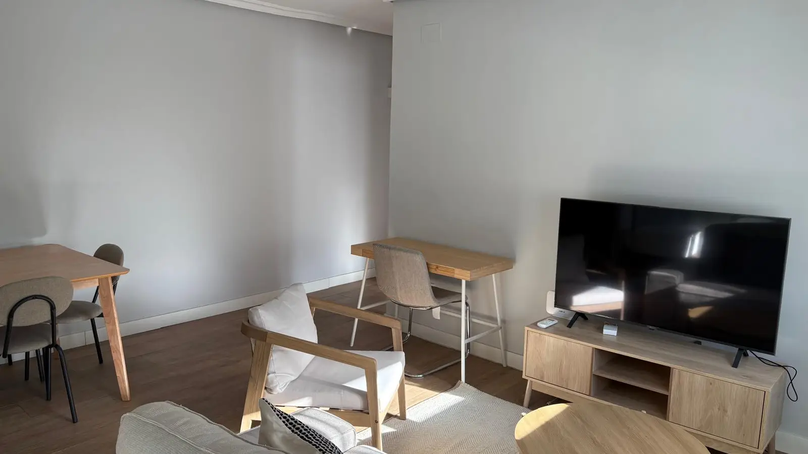 Diese möblierte 2-Zimmer-Wohnung in Simancas verfügt über eine voll ausgestattete Küche mit Backofen, eine Waschmaschine zur Mitbenutzung und individuell regulierbare Klimaanlagen. Haustiere sind erlaubt, Rauchen jedoch nicht. Strom, Wasser, Gas (mit Verbrauchsbeschränkungen) und WLAN sind in der Miete enthalten.