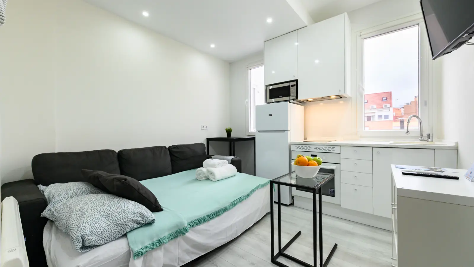 Treten Sie ein in dieses charmante 1-Zimmer-Apartment in Castillejos, Madrid. Das Apartment ist komplett möbliert und mit einer modernen Küche, einer gemütlichen Atmosphäre und allen wichtigen Haushaltsgeräten wie Fernseher und Waschmaschine ausgestattet. Jede Wohnung verfügt über eine eigene Klimaanlage für optimalen Komfort. Spotahome hat das Apartment persönlich geprüft, um Ihnen die Qualität und Zuverlässigkeit Ihres zukünftigen Zuhauses zu garantieren.