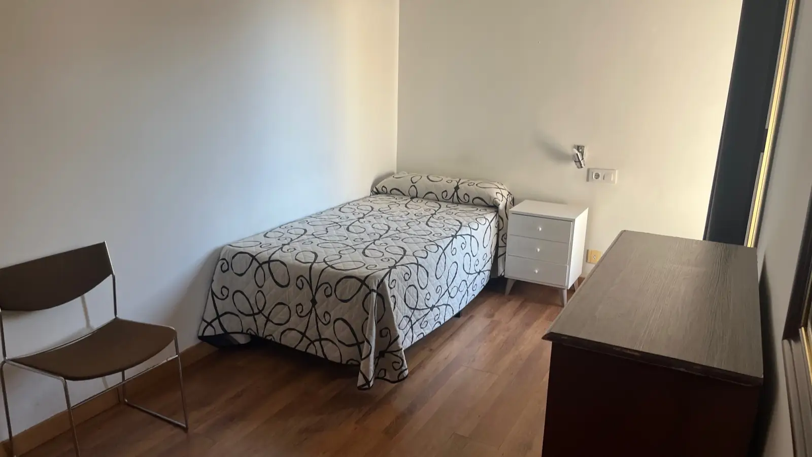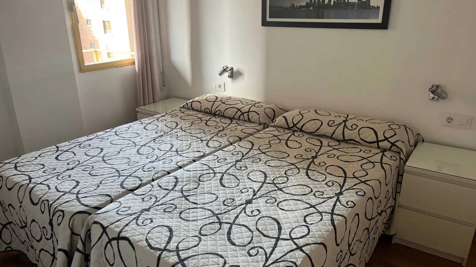 Willkommen in diesem komplett möblierten Apartment in Nueva España, Madrid. Die Wohnung verfügt über zwei Schlafzimmer, Zentralheizung, individuell regulierbare Klimaanlage, eine eigene Waschmaschine und einen Balkon. Ein Aufzug ermöglicht bequemen Zugang. Bitte beachten Sie, dass Haustiere und Rauchen in der Wohnung nicht gestattet sind. Paare, Berufstätige und Studierende sind herzlich willkommen, diese Wohnung zu mieten, die ohne Wohnsitzpflicht angeboten wird.