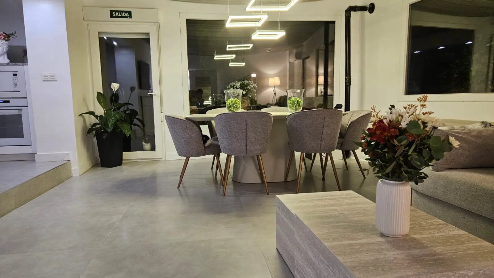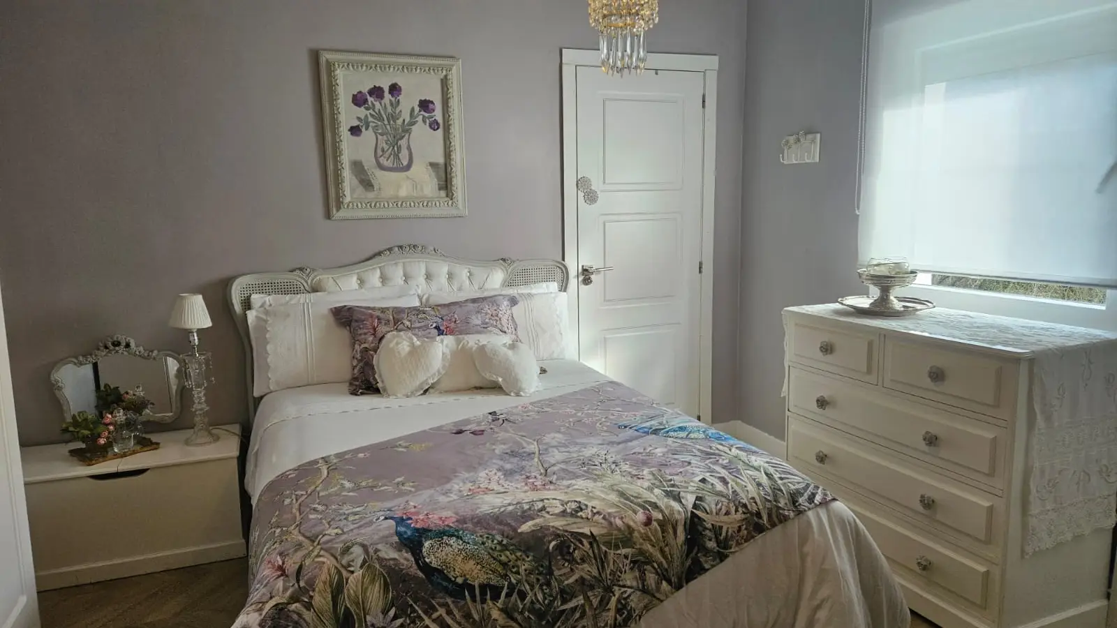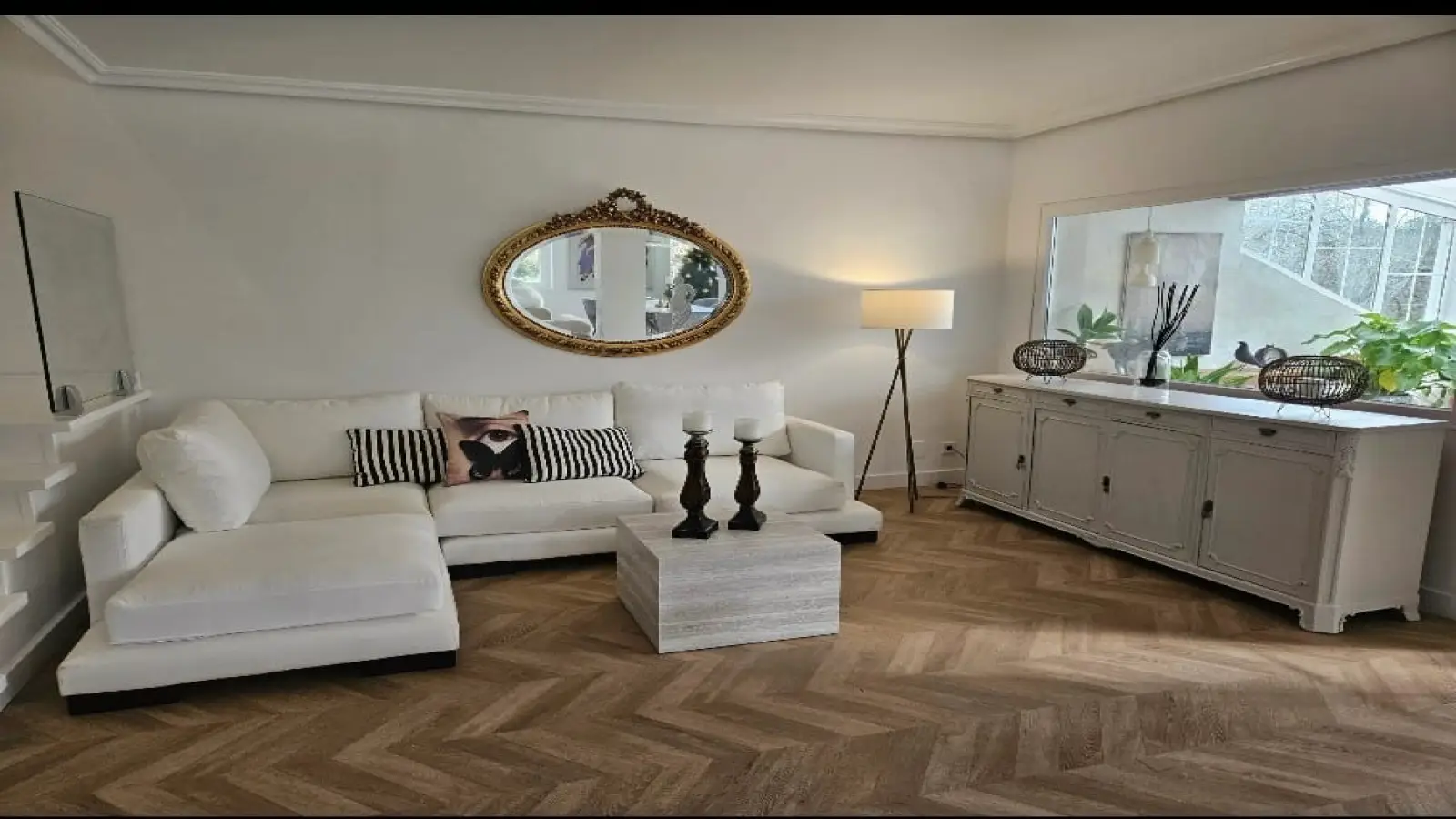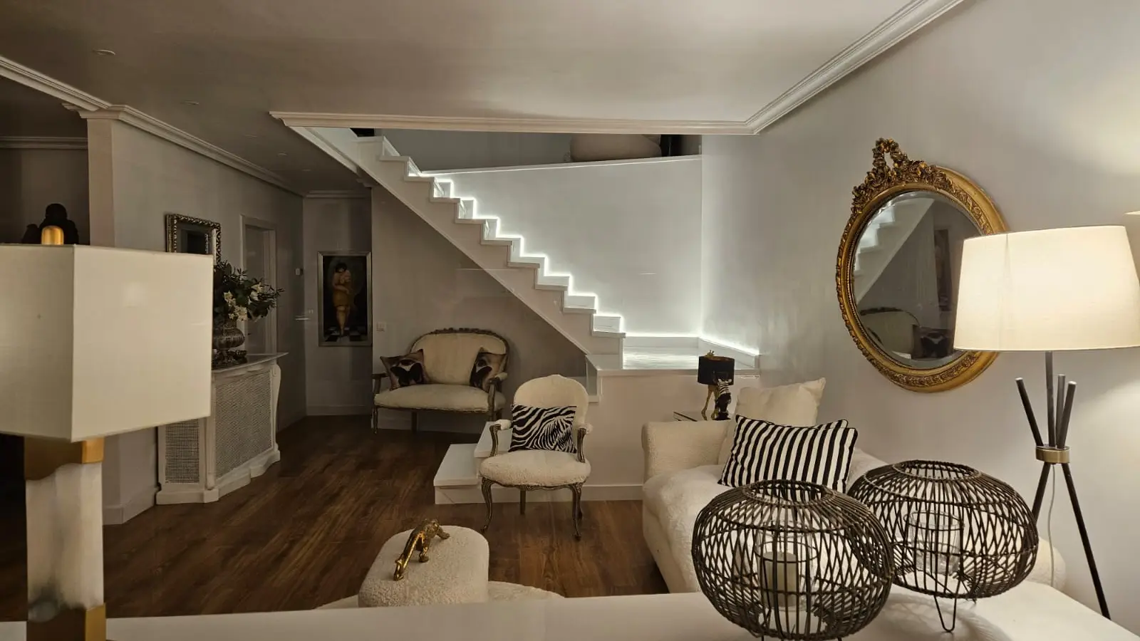 Im Inneren finden Sie ein komfortables Wohnzimmer im französischen Stil mit avantgardistischer Dekoration, Kristallleuchtern, antiken Möbeln und einem hellen Wintergarten als Gästeeingang.