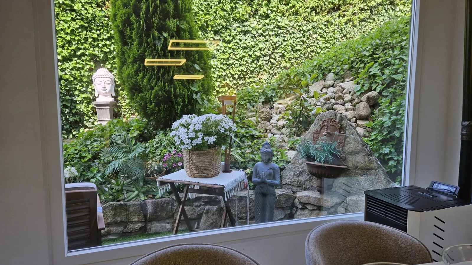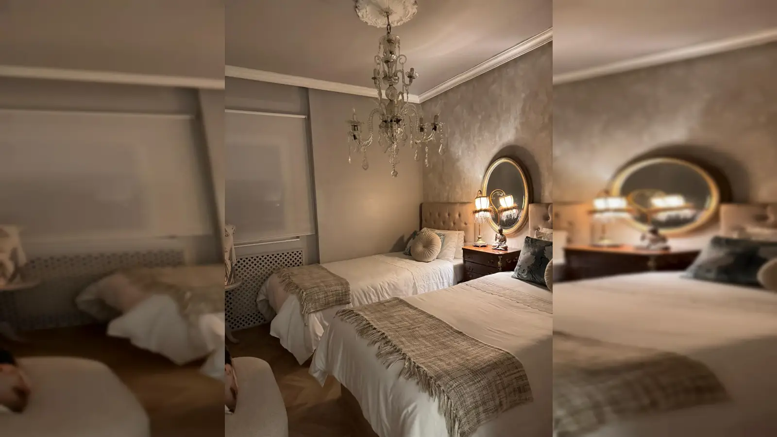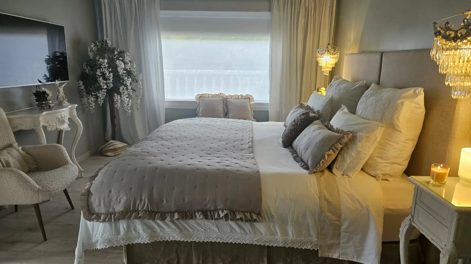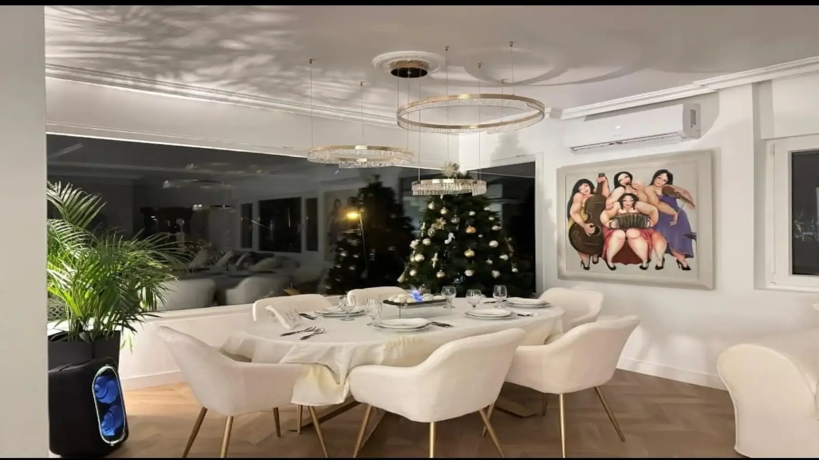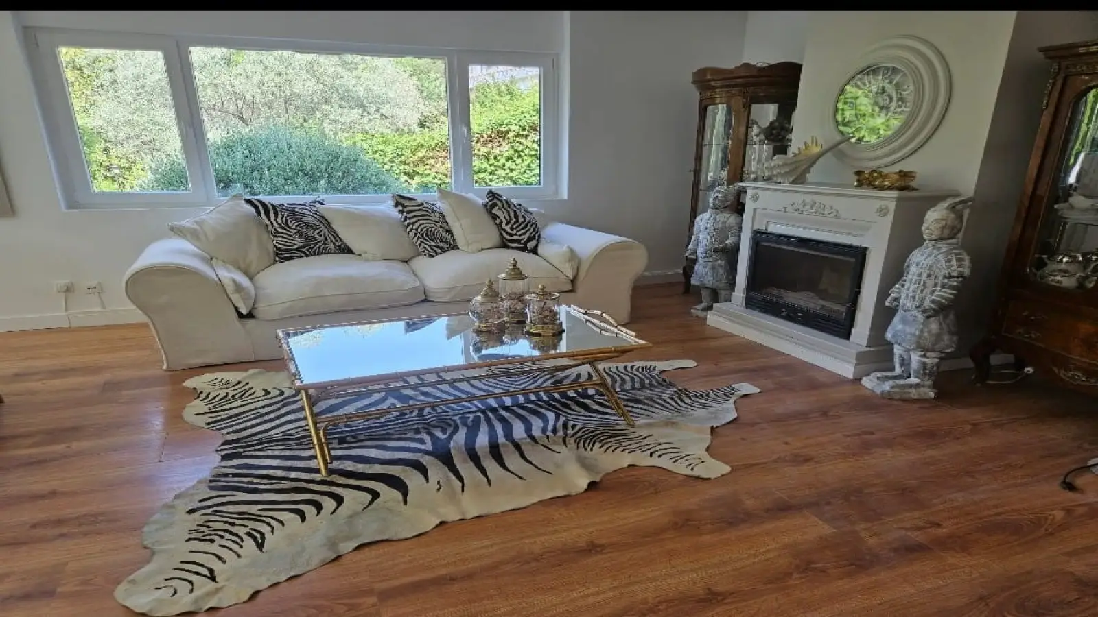Im Inneren finden Sie ein komfortables Wohnzimmer im französischen Stil mit avantgardistischer Dekoration, Kristallleuchtern, antiken Möbeln und einem hellen Wintergarten als Gästeeingang.