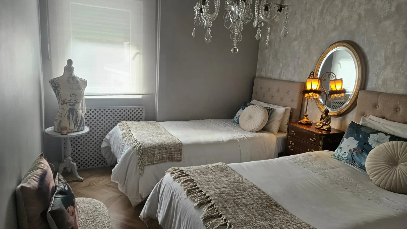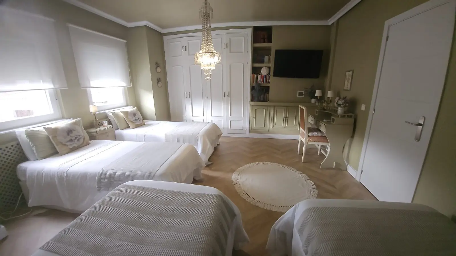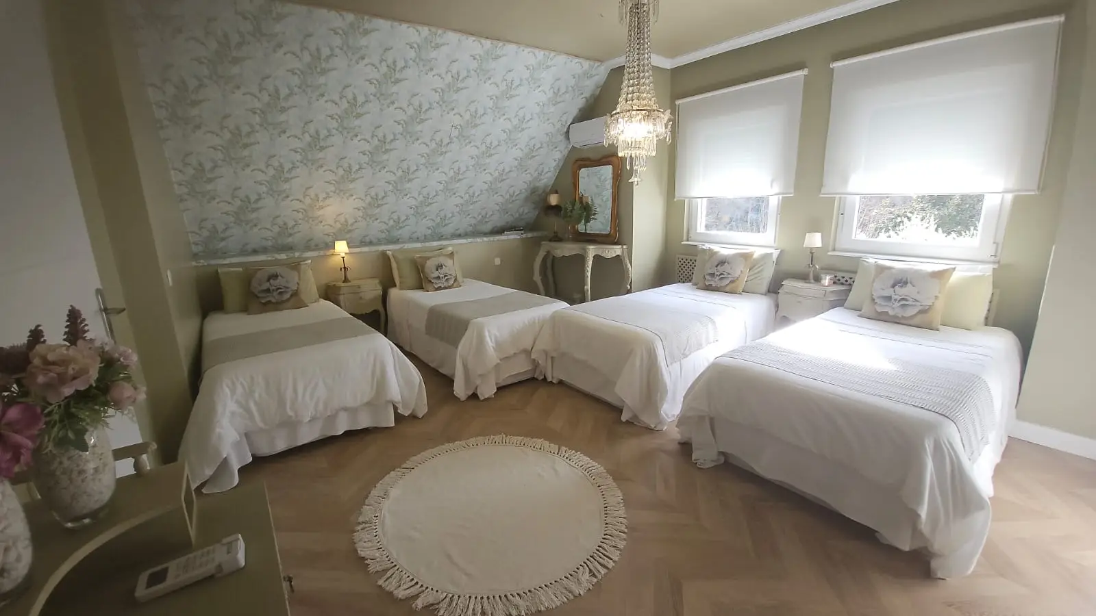 Auf der letzten Etage finden Sie vier geräumige Schlafzimmer (zwei davon mit Doppelbetten, eines mit zwei Einzelbetten und eines mit vier Einzelbetten), die sich immer an die Bedürfnisse der Gäste anpassen.