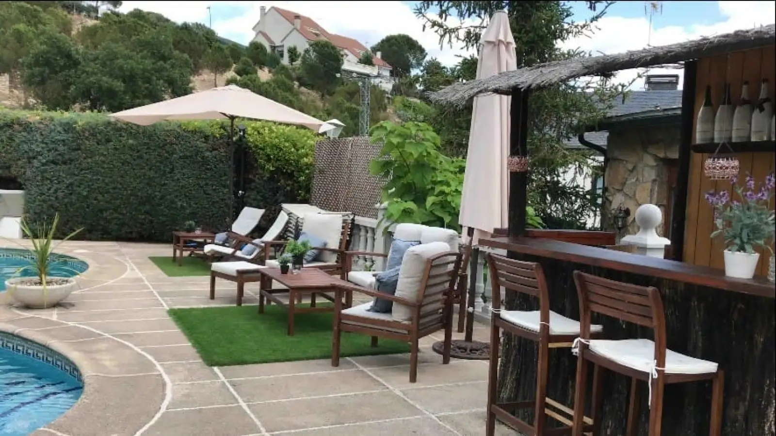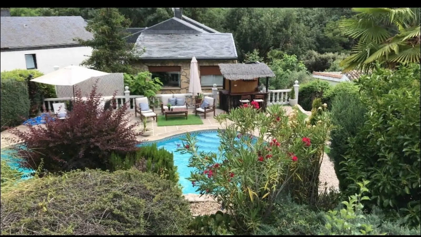 Das Anwesen ist von einem großen Garten von 1000 m2 mit einem privaten beleuchteten Swimmingpool, einer Außenbar mit Kühlschrank und fließendem Wasser und einem überdachten Grill umgeben. Der Garten umfasst eine wunderschöne Vegetation und zeichnet sich durch seine Landschaftsgestaltung aus.