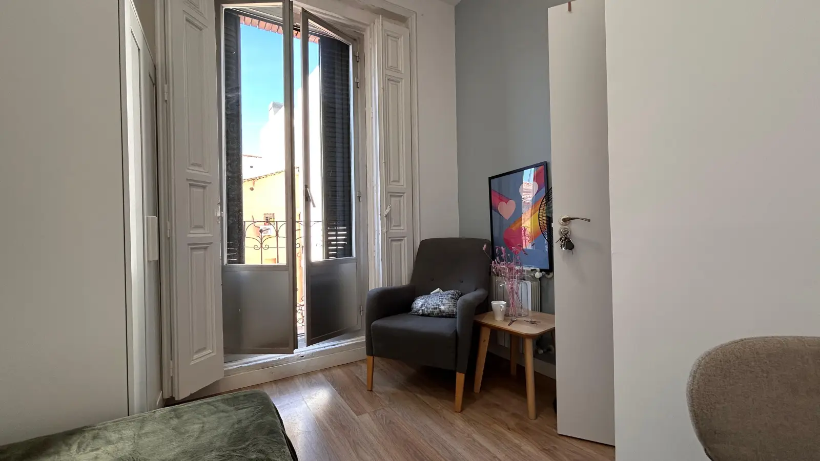 Die Wohnung befindet sich im lebendigen Stadtteil Embajadores, umgeben von kulturellen und künstlerischen Sehenswürdigkeiten. Von der nahegelegenen Calle de Lavapiés bis hin zu kunstvollen Wandmalereien wie „Mirada Andaluza en el Corazón de Madrid“ gibt es unzählige Möglichkeiten zur Erkundung. Weitere Highlights sind die Iglesia Patolica und die Plaza de Nelson Mandela, die Sie bequem zu Fuß erreichen. Entdecken Sie den einzigartigen Charme und die Annehmlichkeiten dieses pulsierenden Stadtviertels.