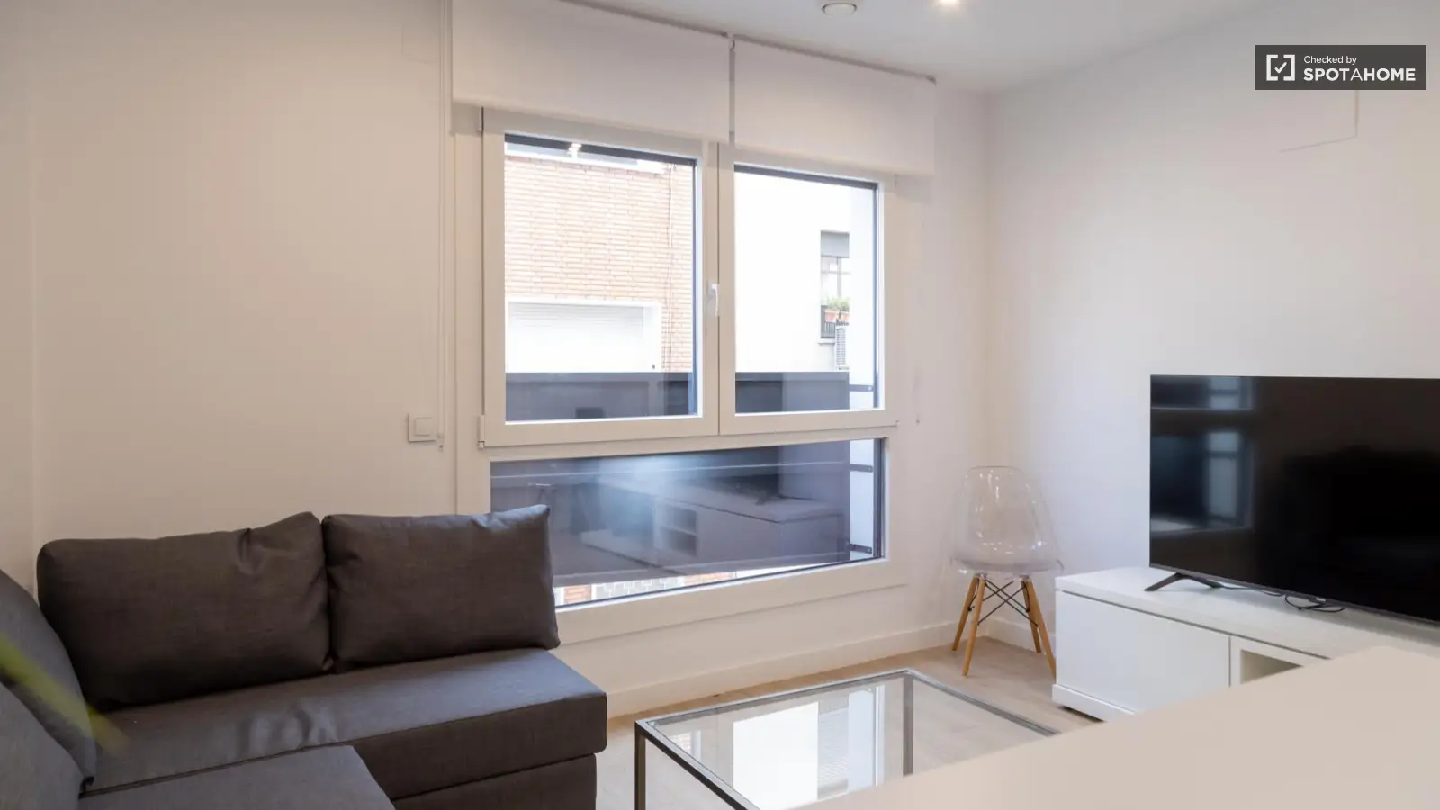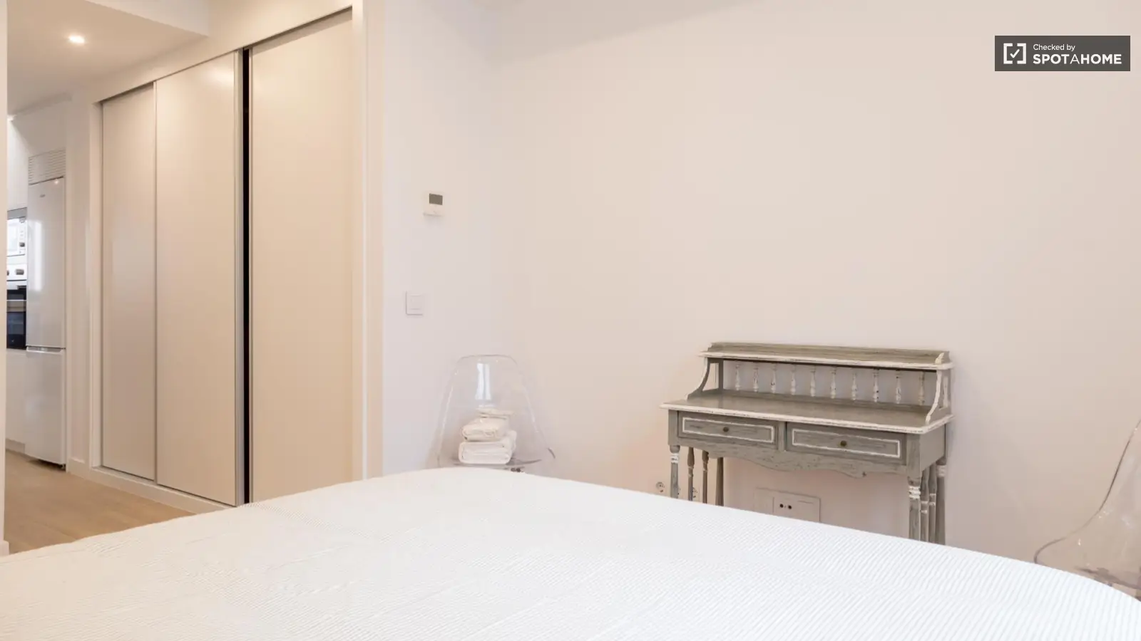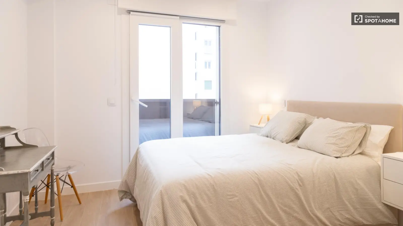 Spotahome präsentiert dieses geprüfte, voll möblierte Zimmer in einer Wohngemeinschaft in Guindalera, Madrid. Zur Ausstattung gehören ein Aufzug, eine eigene Waschmaschine, eine voll ausgestattete Küche mit Geschirrspüler und Backofen, eine Klimaanlage, ein Fernseher und ein Balkon – für ein komfortables Wohnerlebnis im Freien. Die Qualität wurde von Spotahome geprüft.