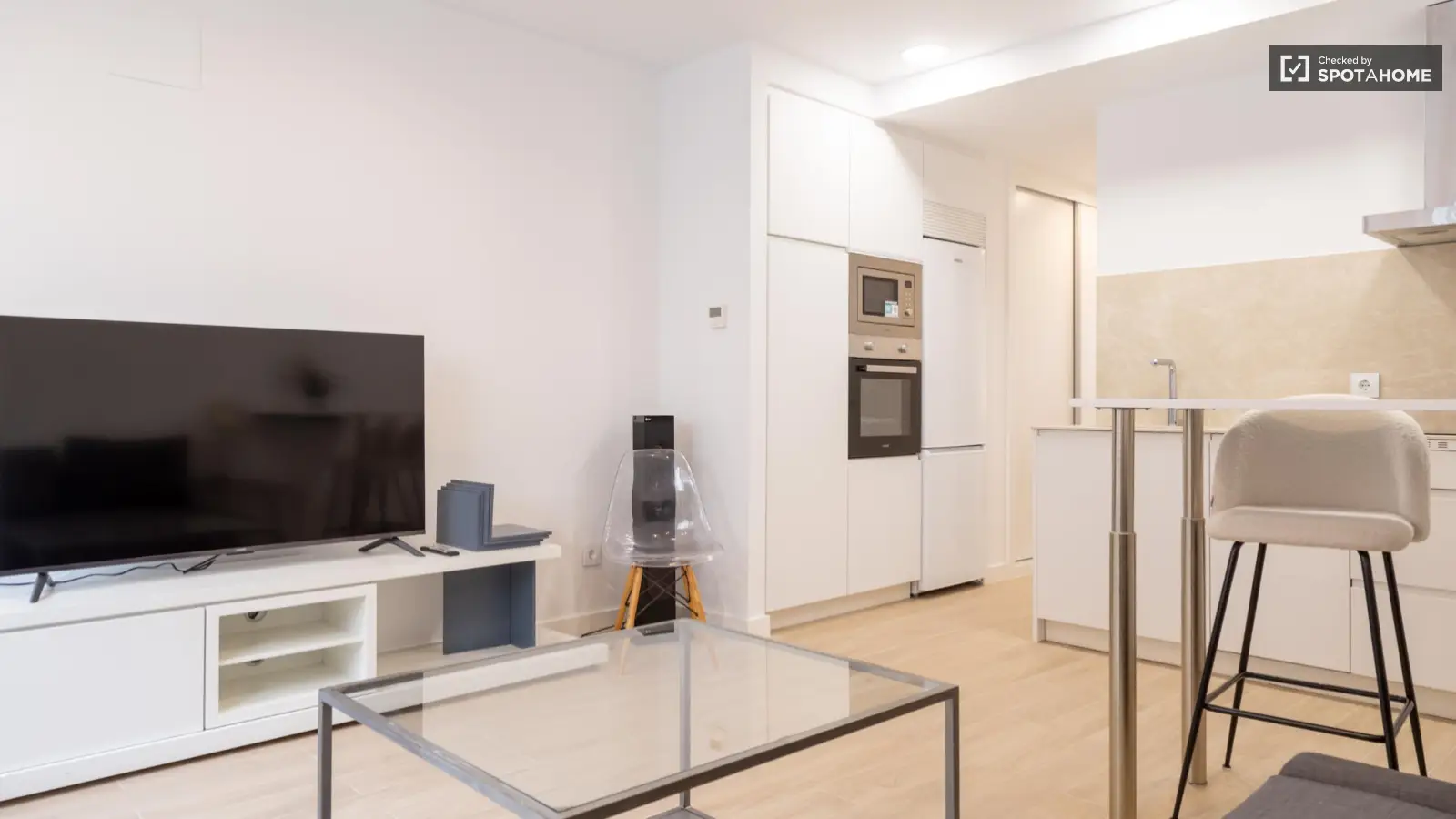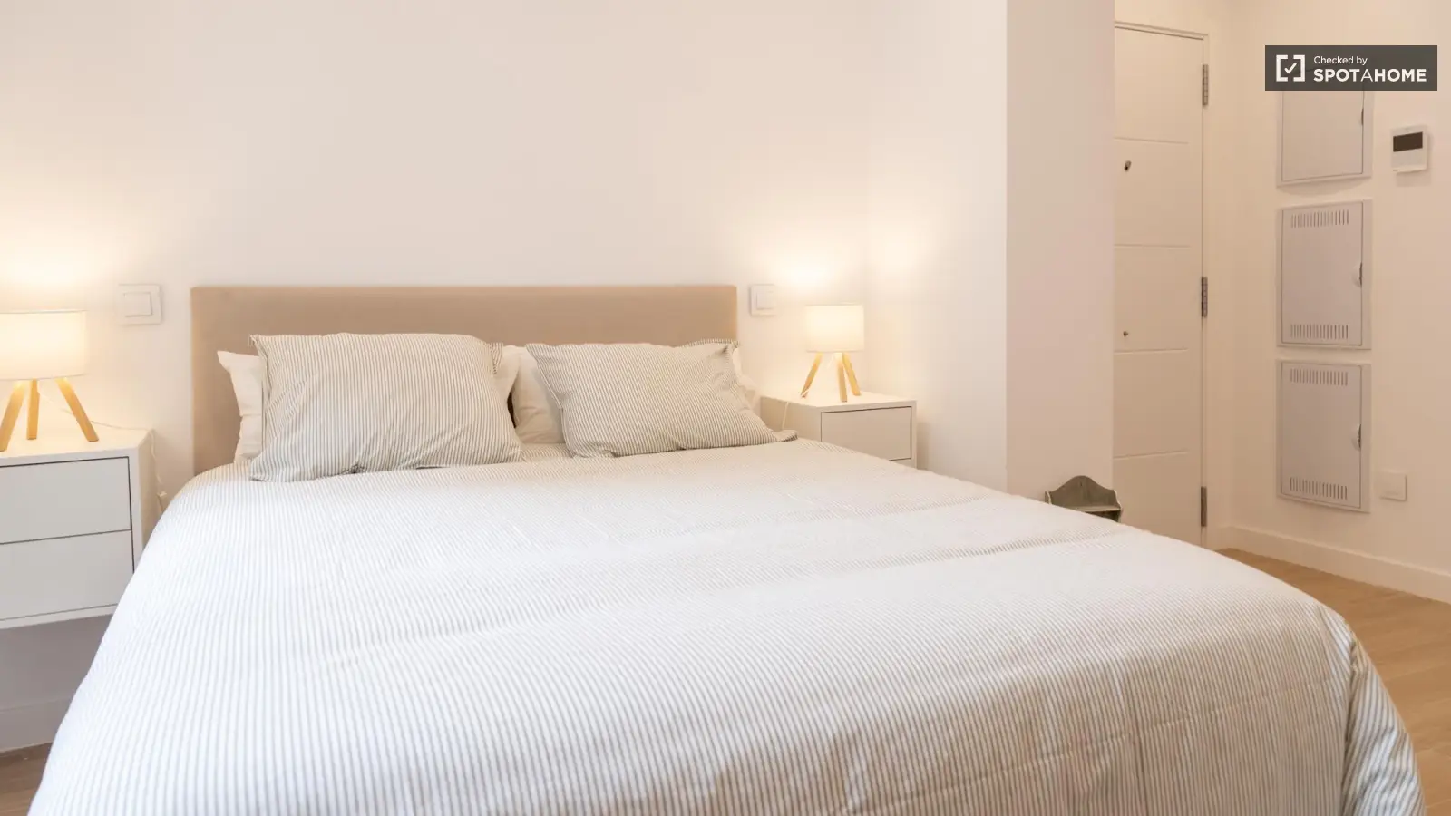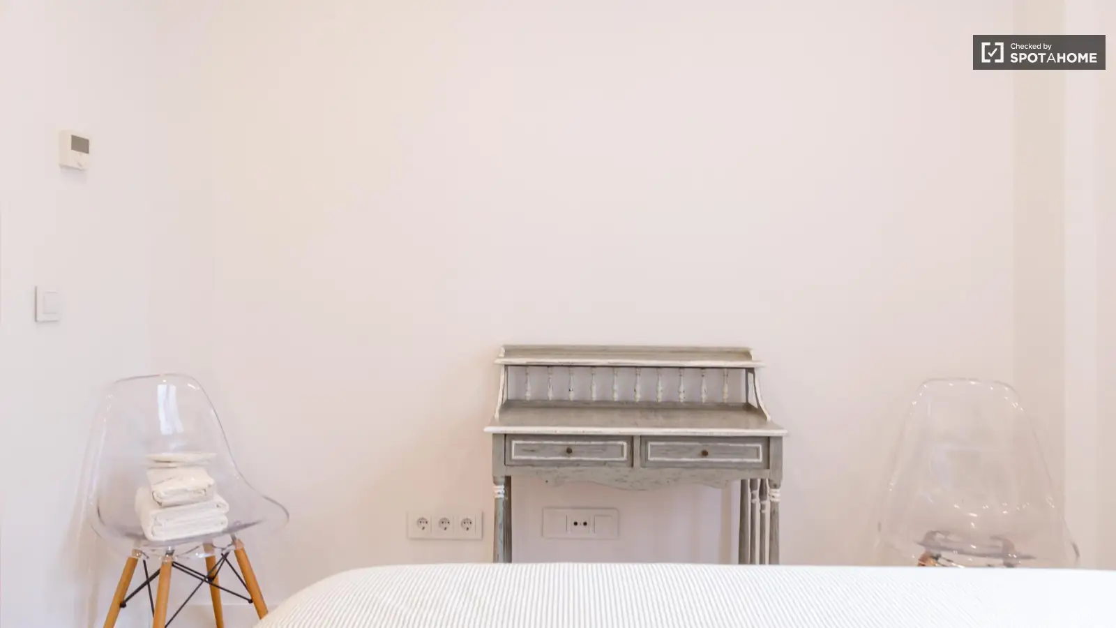 Spotahome präsentiert dieses geprüfte, voll möblierte Zimmer in einer Wohngemeinschaft in Guindalera, Madrid. Zur Ausstattung gehören ein Aufzug, eine eigene Waschmaschine, eine voll ausgestattete Küche mit Geschirrspüler und Backofen, eine Klimaanlage, ein Fernseher und ein Balkon – für ein komfortables Wohnerlebnis im Freien. Die Qualität wurde von Spotahome geprüft.