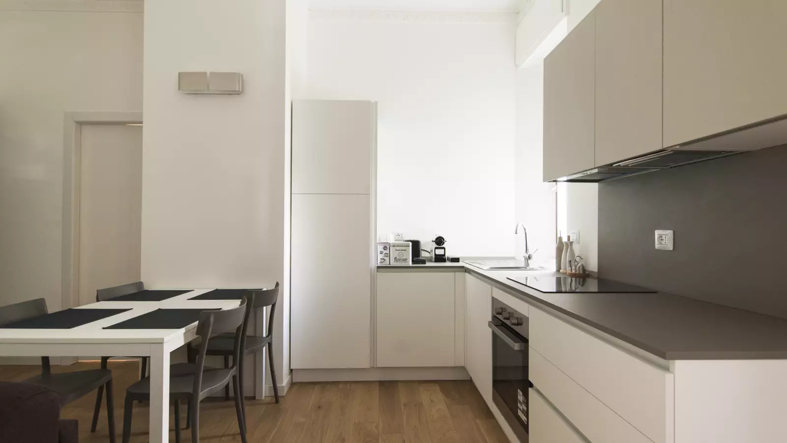 Sie werden das offene Wohnzimmer und die offene Küche lieben. Es verfügt über coole moderne Geräte, polierte Holzböden und stilvolle Möbel. Hinzu kommt der seltsame Touch von Kunstwerken, um etwas Farbe hinzuzufügen.