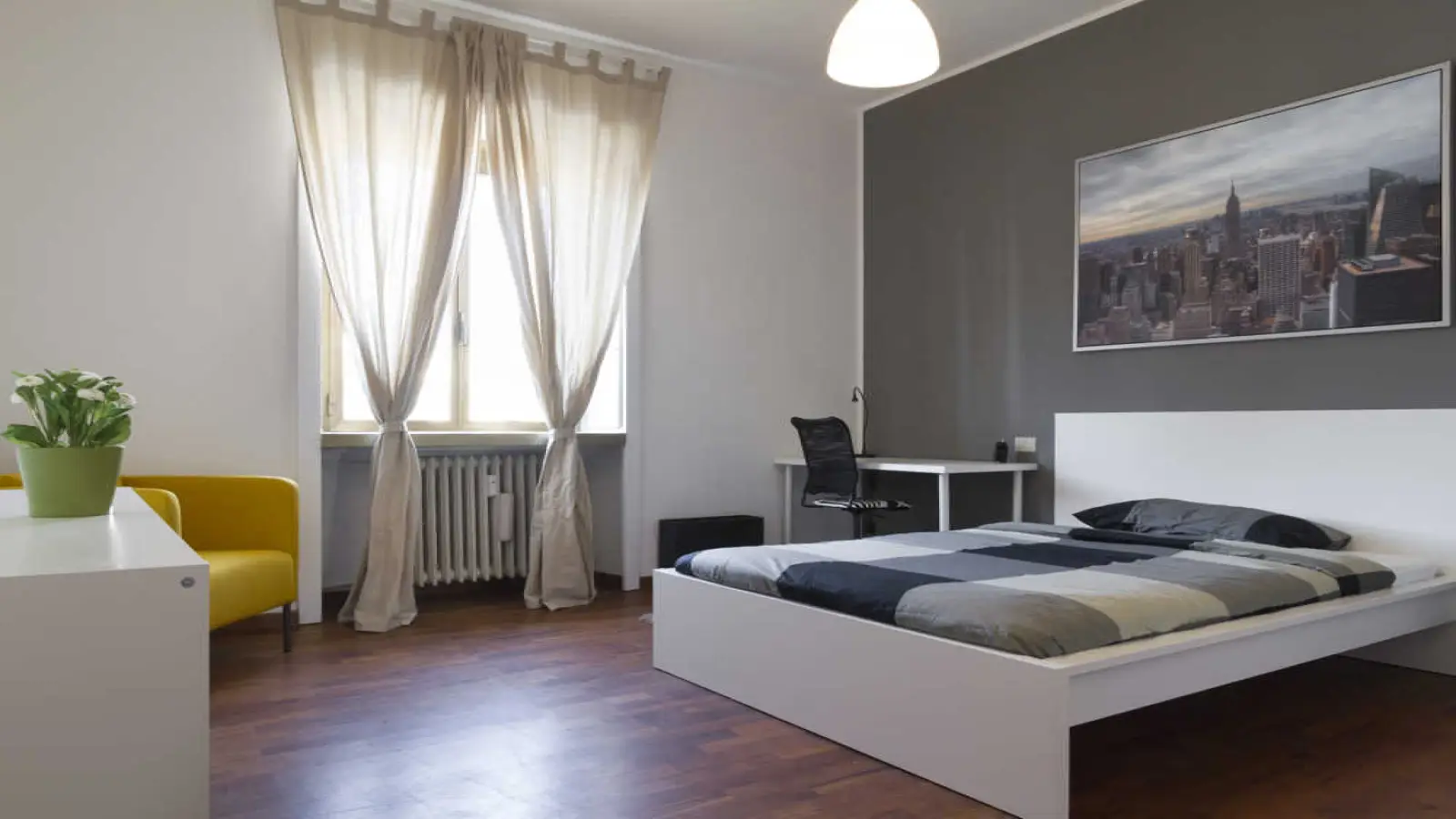 Dieses möblierte Zimmer befindet sich in einer 5-Zimmer-WG im lebhaften Mailänder Viertel Magenta-San Vittore. Das Zimmer ist gut ausgestattet, und die WG verfügt über Zentralheizung, eine voll ausgestattete Küche und eine eigene Waschmaschine. Hinweis: WLAN ist verfügbar. Berufstätige sind willkommen, Paare hingegen nicht.