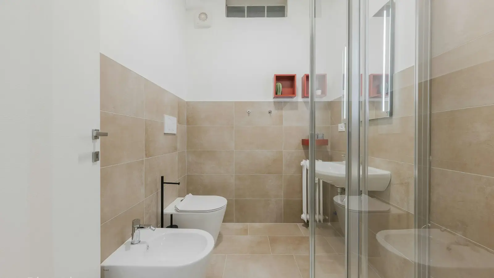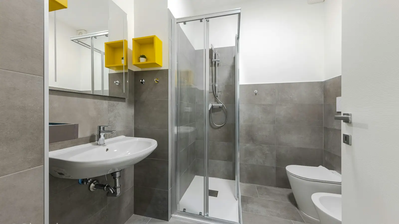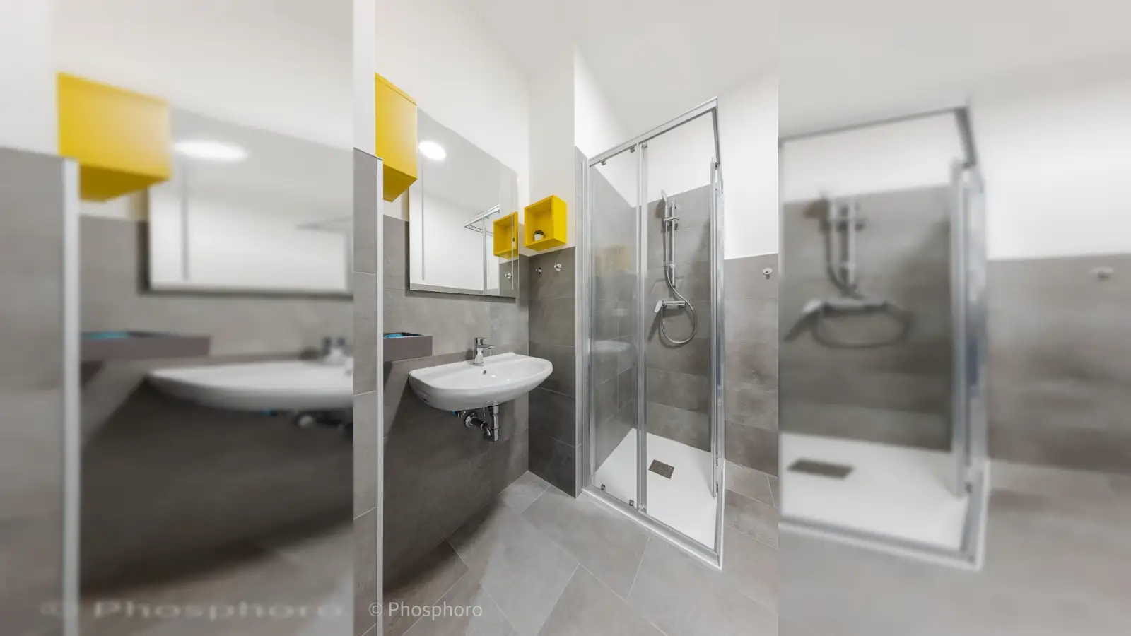 Die gesamte Wohnung, bestehend aus 7 Zimmern, wurde mit Blick auf Komfort und Design gestaltet, um ein angenehmes Zusammenleben von 7 Studierenden zu gewährleisten. Die voll ausgestattete Küche verfügt über einen Kühlschrank mit 7 Fächern (eines pro Bewohner) und bietet ausreichend Stauraum. Der angrenzende Wohnbereich besticht durch einen eleganten runden Tisch und farbige Stühle. Alle 4 Badezimmer, eines davon exklusiv, sind mit einer Dusche ausgestattet. Ein moderner Waschtrockner steht den Bewohnern ebenfalls zur Verfügung, sodass das Trocknen der Wäsche entfällt. Die angegebenen Nebenkosten basieren auf einem moderaten Verbrauch.