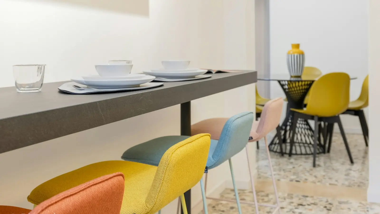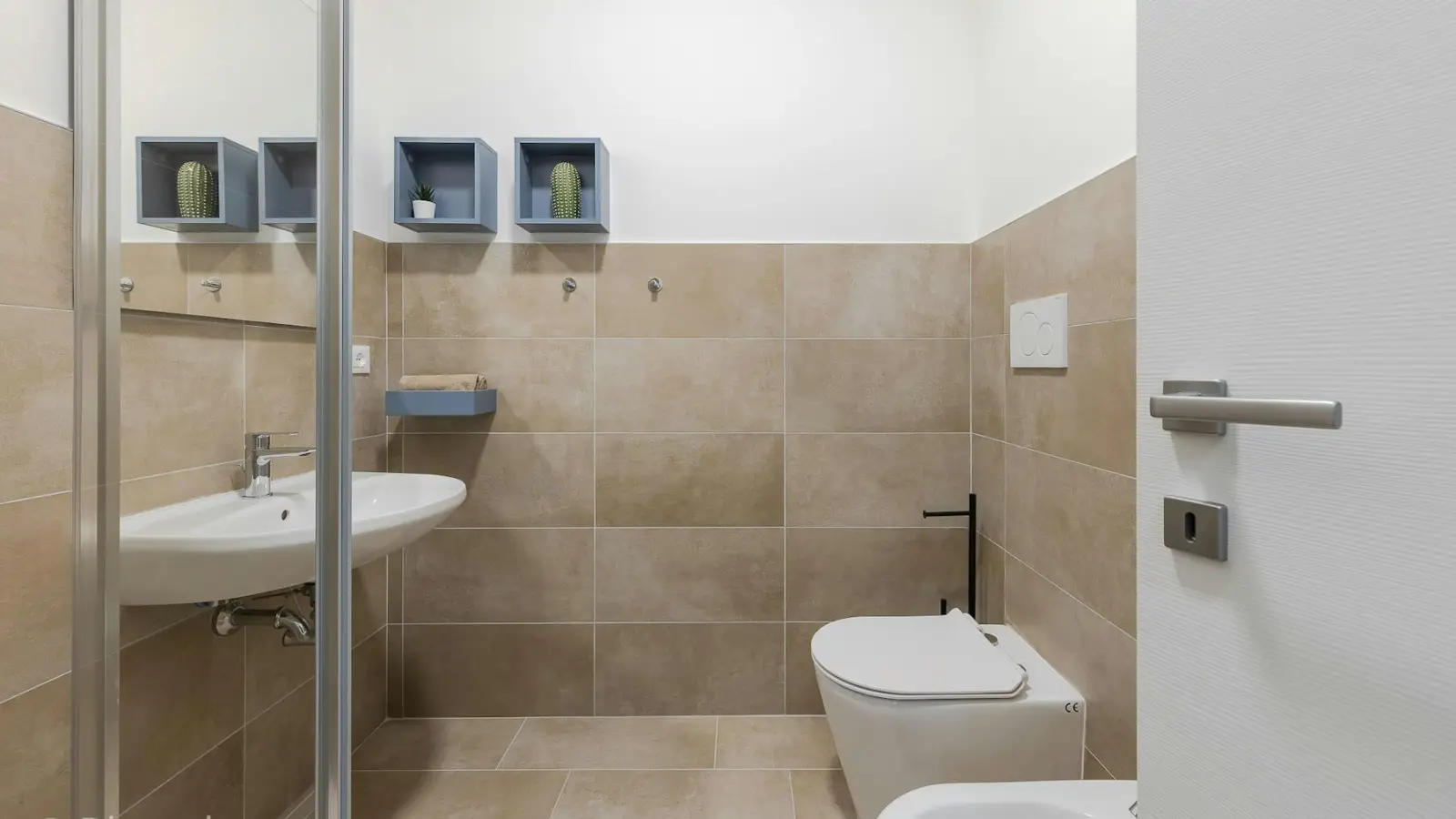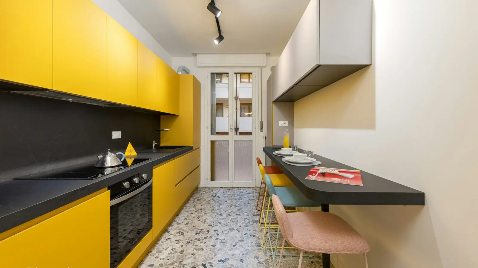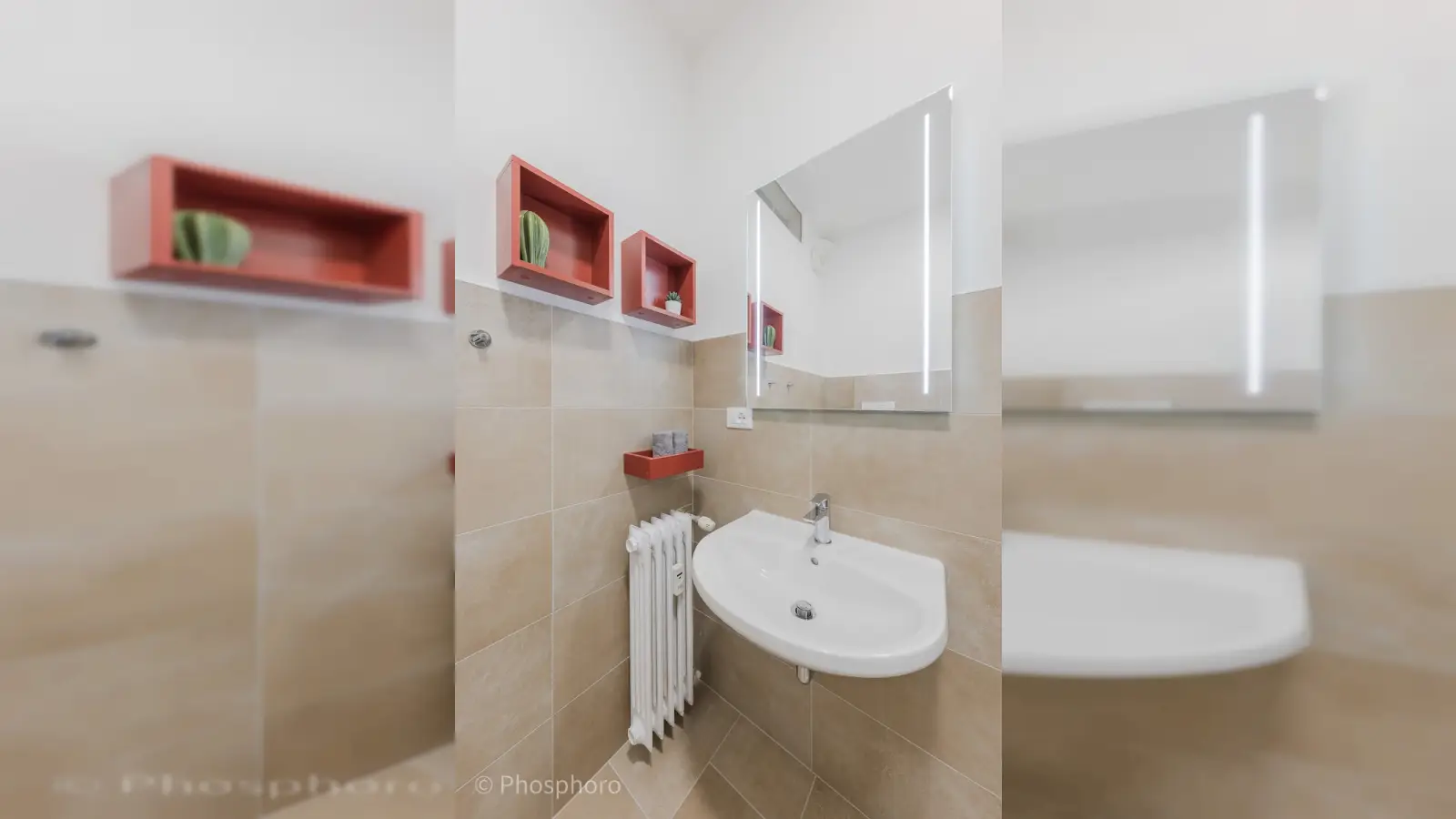 Die gesamte Wohnung, bestehend aus 7 Zimmern, wurde mit Blick auf Komfort und Design gestaltet, um ein angenehmes Zusammenleben von 7 Studierenden zu gewährleisten. Die voll ausgestattete Küche verfügt über einen Kühlschrank mit 7 Fächern (eines pro Bewohner) und bietet ausreichend Stauraum. Der angrenzende Wohnbereich besticht durch einen eleganten runden Tisch und farbige Stühle. Alle 4 Badezimmer, eines davon exklusiv, sind mit einer Dusche ausgestattet. Ein moderner Waschtrockner steht den Bewohnern ebenfalls zur Verfügung, sodass das Trocknen der Wäsche entfällt. Die angegebenen Nebenkosten basieren auf einem moderaten Verbrauch.