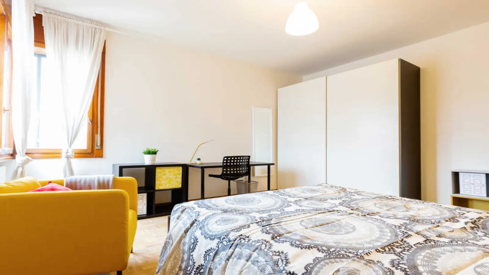 Entdecken Sie dieses einladende Zimmer in einer 5-Zimmer-WG in San Carlo, Padua. Die Wohnung ist komplett möbliert und bietet moderne Annehmlichkeiten wie eine eigene Waschmaschine, Zentralheizung, einen Geschirrspüler, einen Backofen und einen Fernseher. Die Küche ist voll ausgestattet, und es gibt einen Balkon oder eine Terrasse zum Entspannen. Die Unterkunft ist barrierefrei und verfügt über einen Aufzug. Alle Nebenkosten – inklusive Strom, WLAN, Gas und Wasser – sind im Preis enthalten. Rauchen und Haustiere sind nicht gestattet, und Paare können diese Unterkunft nicht mieten. Sie eignet sich für Berufstätige und Studierende. Die Unterkunft wurde von Spotahome stichprobenartig geprüft, um hohe Qualitätsstandards für Mieter zu gewährleisten.