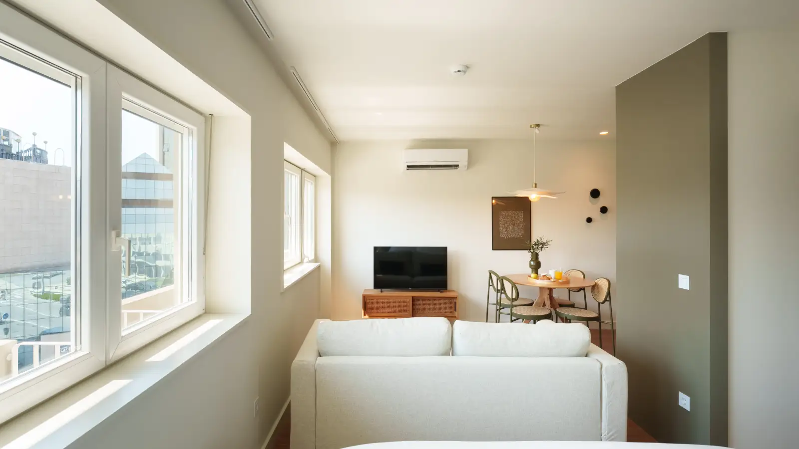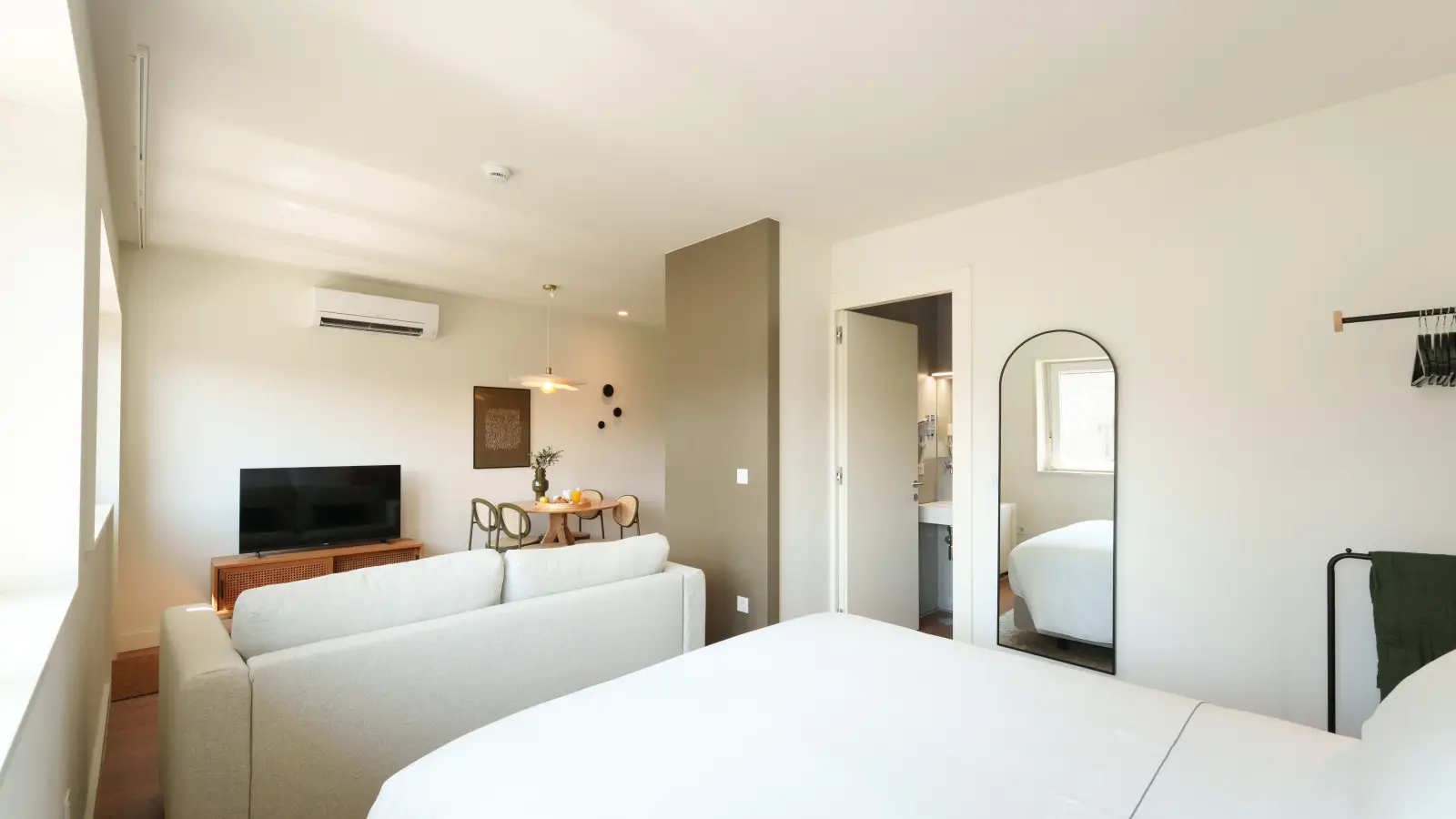 Dieses voll möblierte Studio-Apartment in Porto bietet alle Nebenkosten inklusive. Es verfügt über eine gut ausgestattete Küche, einen Balkon und individuell regulierbare Klimaanlagen. Ein Geschirrspüler ist ebenfalls vorhanden.