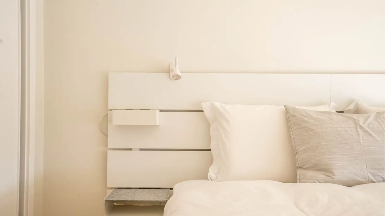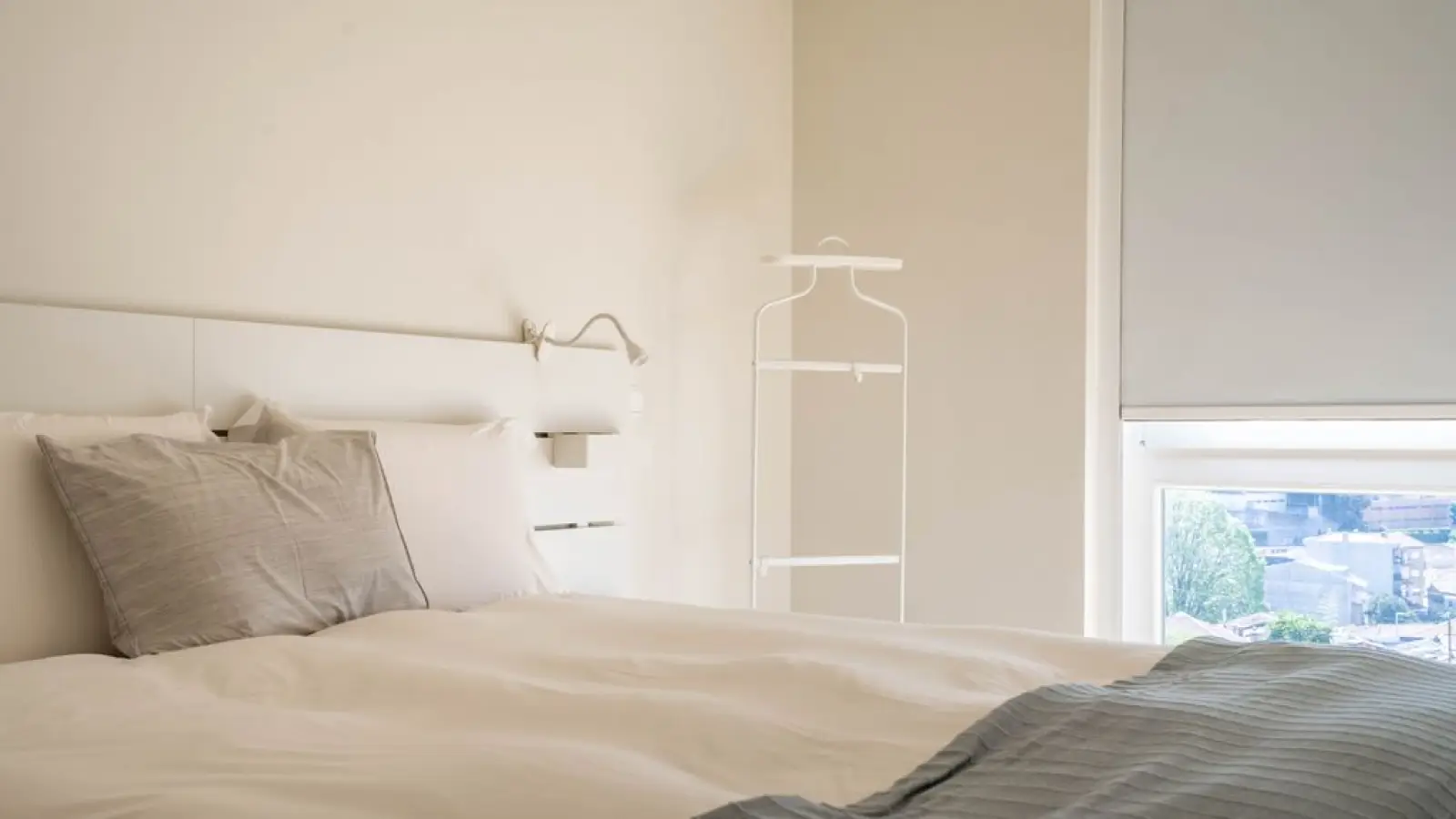 Schlafzimmer - Großzügiges Doppelzimmer mit viel Tageslicht - Komfortables Bett mit hochwertiger Bettwäsche - Privates Badezimmer en suite für mehr Privatsphäre - Ruhige, elegante Einrichtung für erholsame Nächte