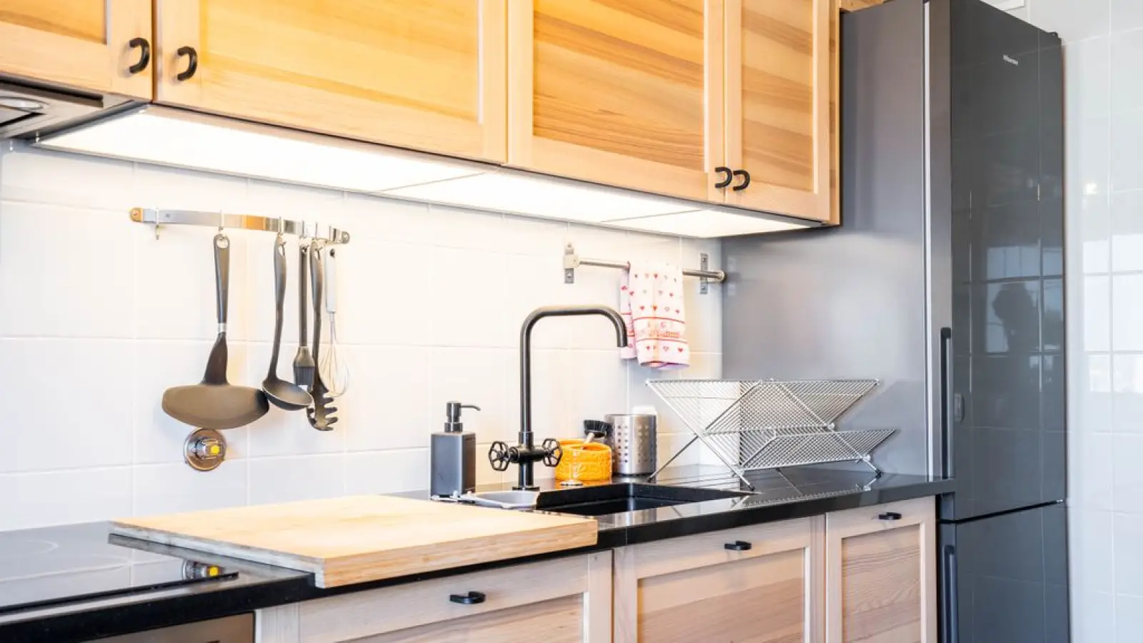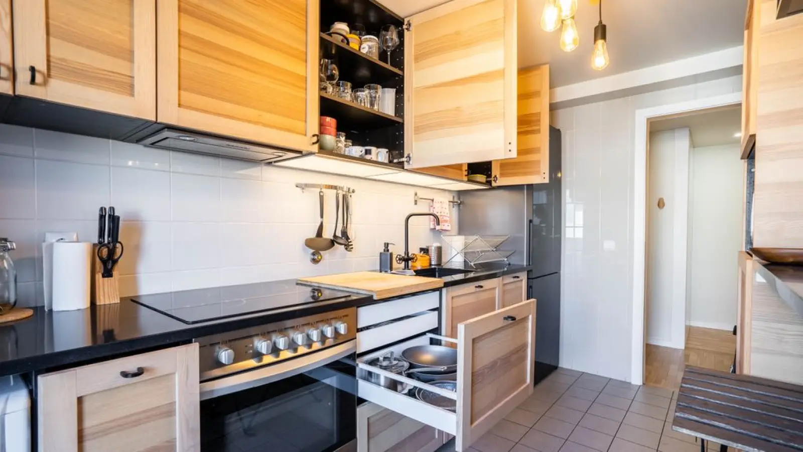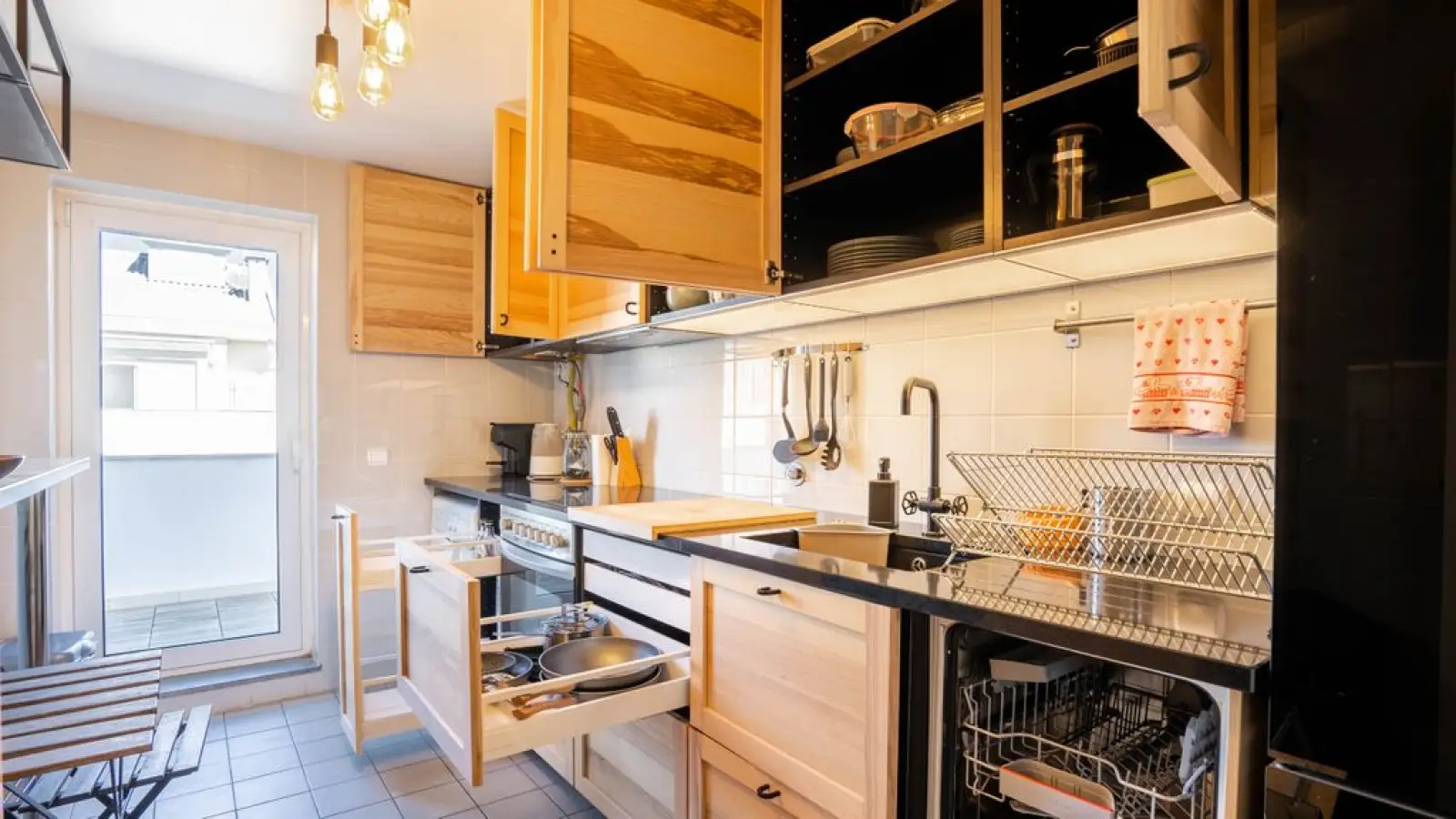 Küche - Voll ausgestattete Küche für alle, die gerne kochen - Moderne Geräte und das nötige Kochgeschirr - Praktische Raumaufteilung, die Stil und Funktionalität vereint