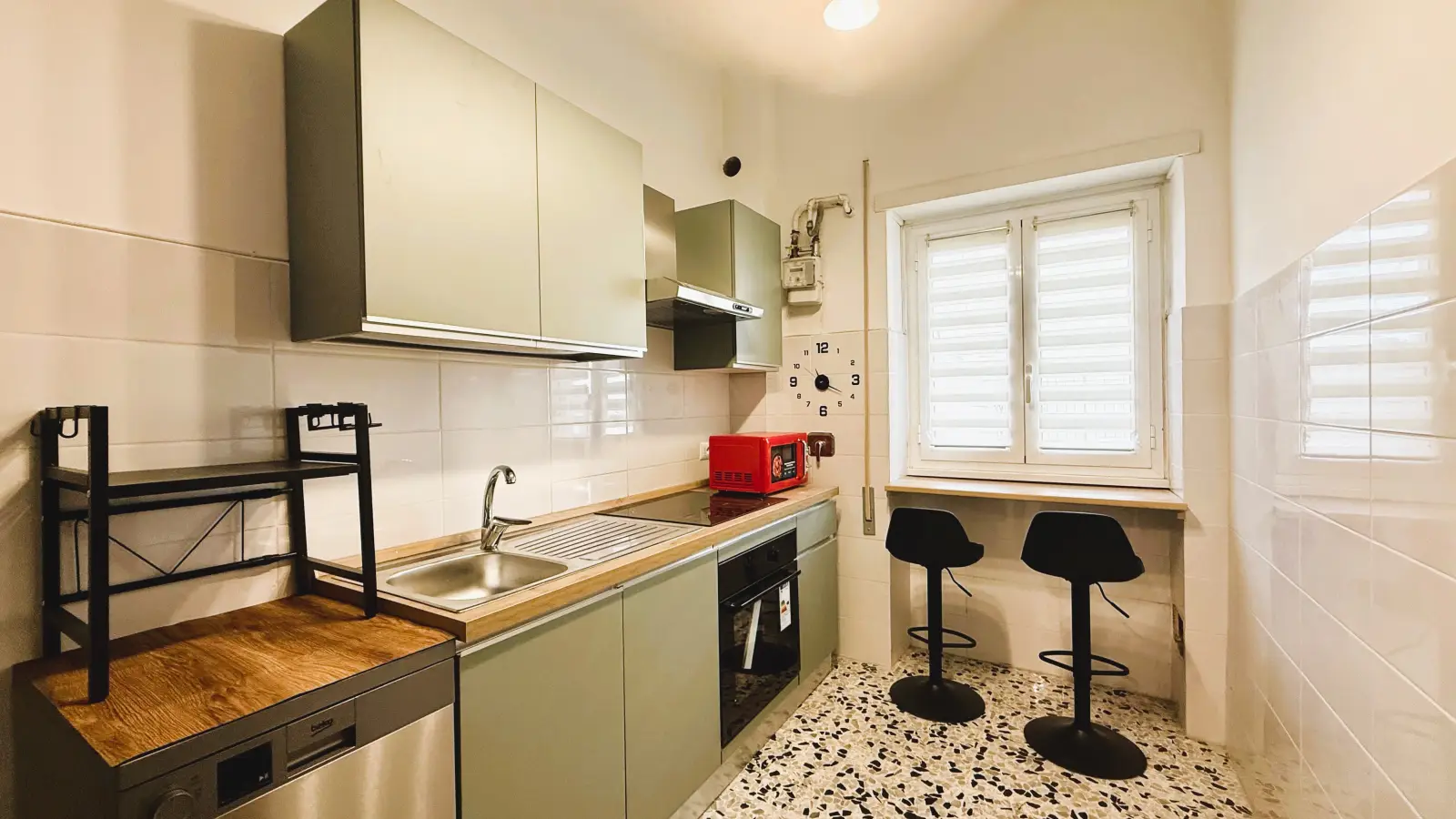 Diese komplett möblierte 3-Zimmer-Wohnung bietet komfortables Wohnen im Viertel Torrevecchia Quartiere Primavalle in Rom. Mit einer voll ausgestatteten Küche, individuell regulierbaren Klimaanlagen, Gasheizung und inklusiven Annehmlichkeiten wie Strom, Wasser, Gas und WLAN ist diese Wohnung ideal für alle, die Wert auf Komfort legen. Eine Waschmaschine, ein Geschirrspüler und ein Backofen stehen Ihnen zur gemeinsamen Nutzung zur Verfügung. Spotahome garantiert, dass alle Vermieter einem gründlichen Überprüfungsprozess unterzogen werden, um Ihre Sicherheit zu gewährleisten.