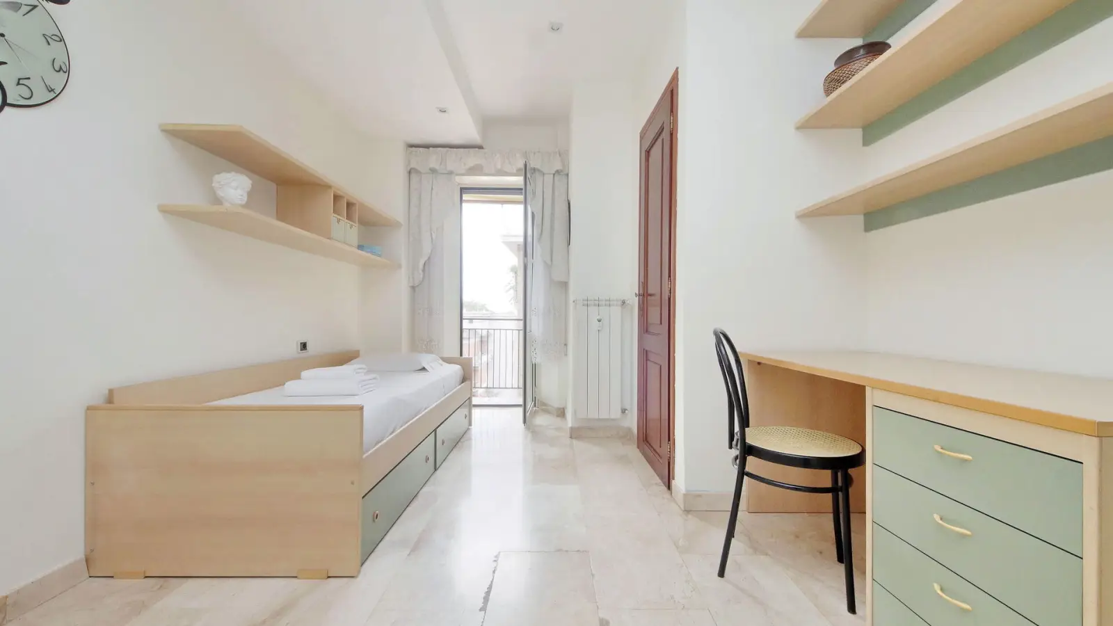 Entdecken Sie dieses charmante Apartment mit 2 Schlafzimmern im pulsierenden Viertel Garbatella in Rom. Die Wohnung ist komplett möbliert und bietet Ihnen höchsten Komfort. Individuell regulierbare Klimaanlage und Zentralheizung sorgen für ein gemütliches Ambiente. Ein Balkon lädt zum Entspannen im Freien ein. Die Küche ist komplett mit Geschirrspüler und Backofen ausgestattet. Eine gemeinschaftlich genutzte Waschmaschine steht Ihnen ebenfalls zur Verfügung. Rauchen und Haustiere sind nicht gestattet.