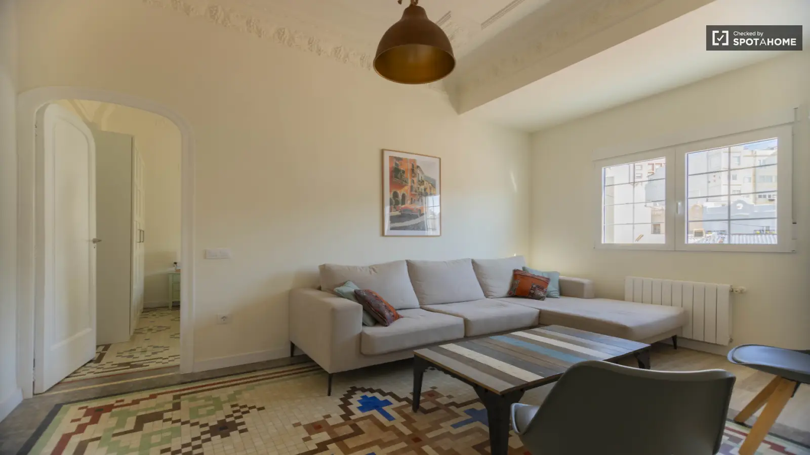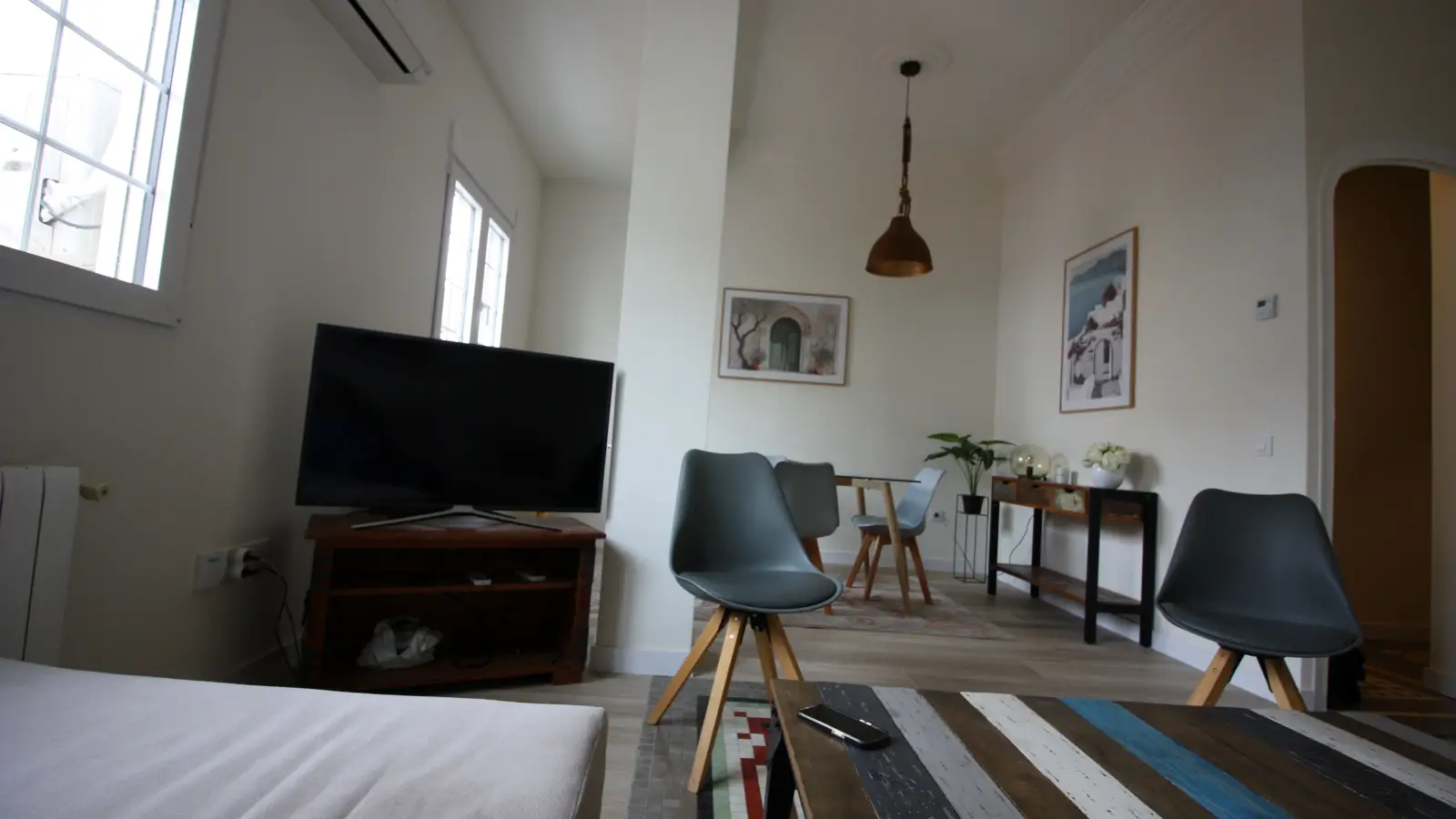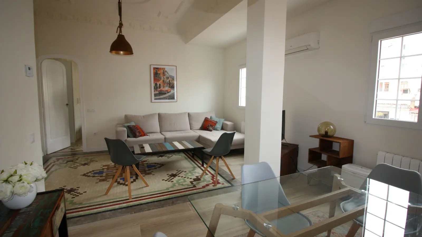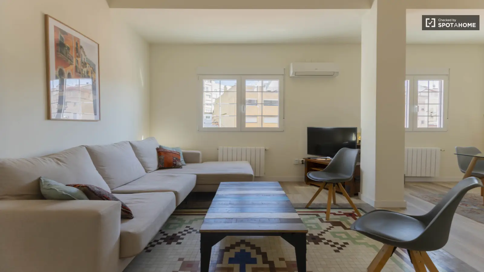 Willkommen in diesem wunderschönen 2-Zimmer-Apartment in La Gran Vía, Valencia. Die Unterkunft ist komplett möbliert und verfügt über individuell regulierbare Klimaanlagen, eine eigene Waschmaschine und eine voll ausgestattete Küche mit Geschirrspüler und Backofen. WLAN steht Ihnen zur Verfügung, und Rauchen ist gestattet. Die Unterkunft wurde von Spotahome persönlich geprüft, um Qualität und Zuverlässigkeit zu gewährleisten.