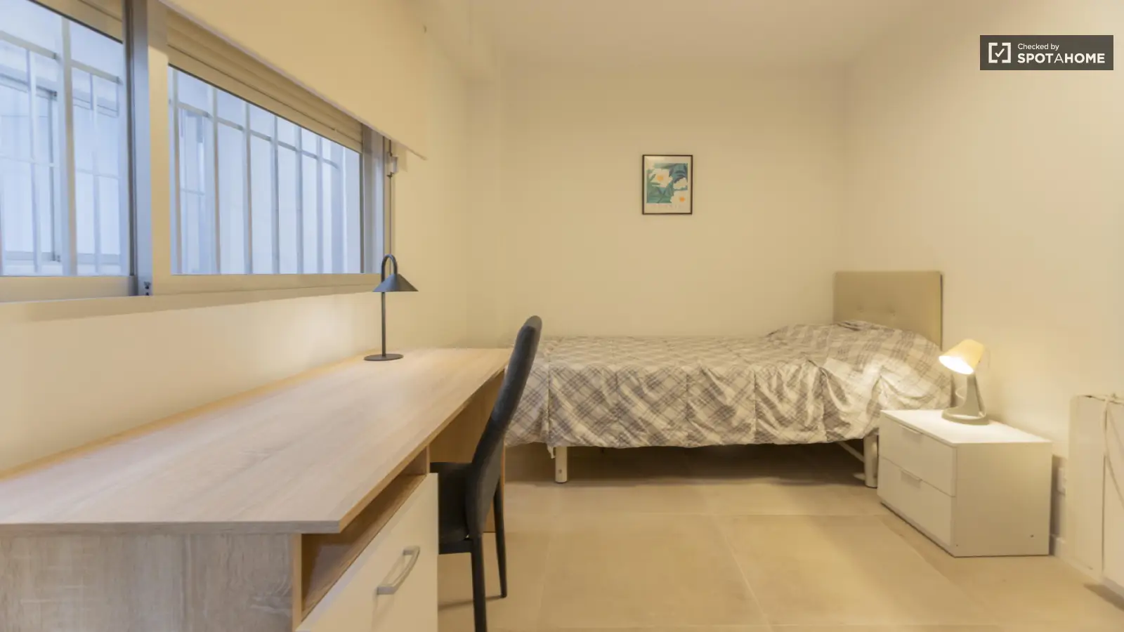 Entdecken Sie dieses gemütliche Zimmer in einer 5-Zimmer-WG in Burjassot, Valencia. Die Unterkunft ist komplett möbliert und garantiert einen komfortablen Aufenthalt. Zur Gemeinschaftseinrichtung gehört eine voll ausgestattete Küche mit Backofen und Waschmaschine. Spotahome hat die Unterkunft persönlich geprüft, damit Sie sich keine Sorgen machen müssen. Alle Nebenkosten wie Wasser, Gas, Strom und WLAN sind im Mietpreis enthalten.